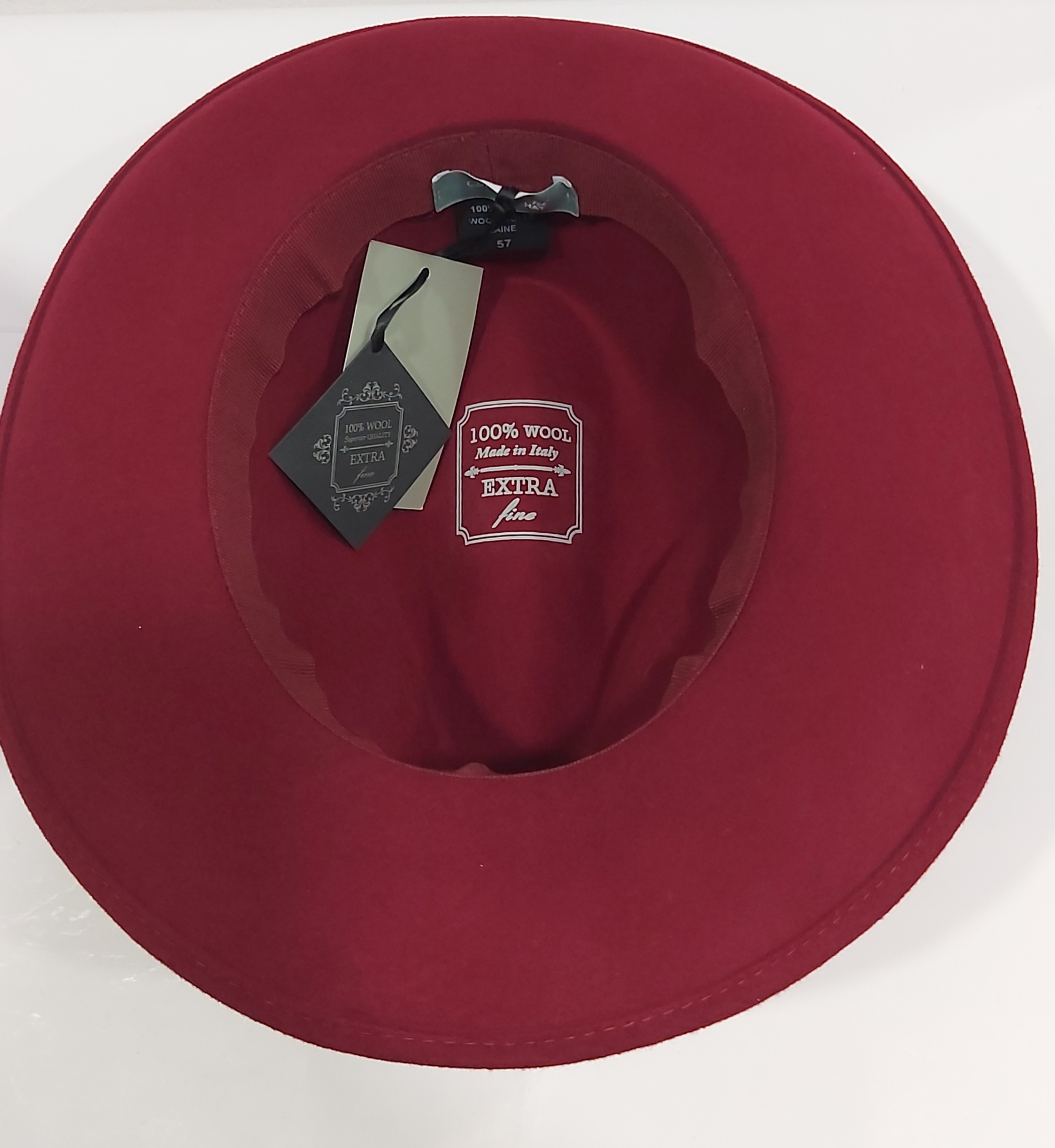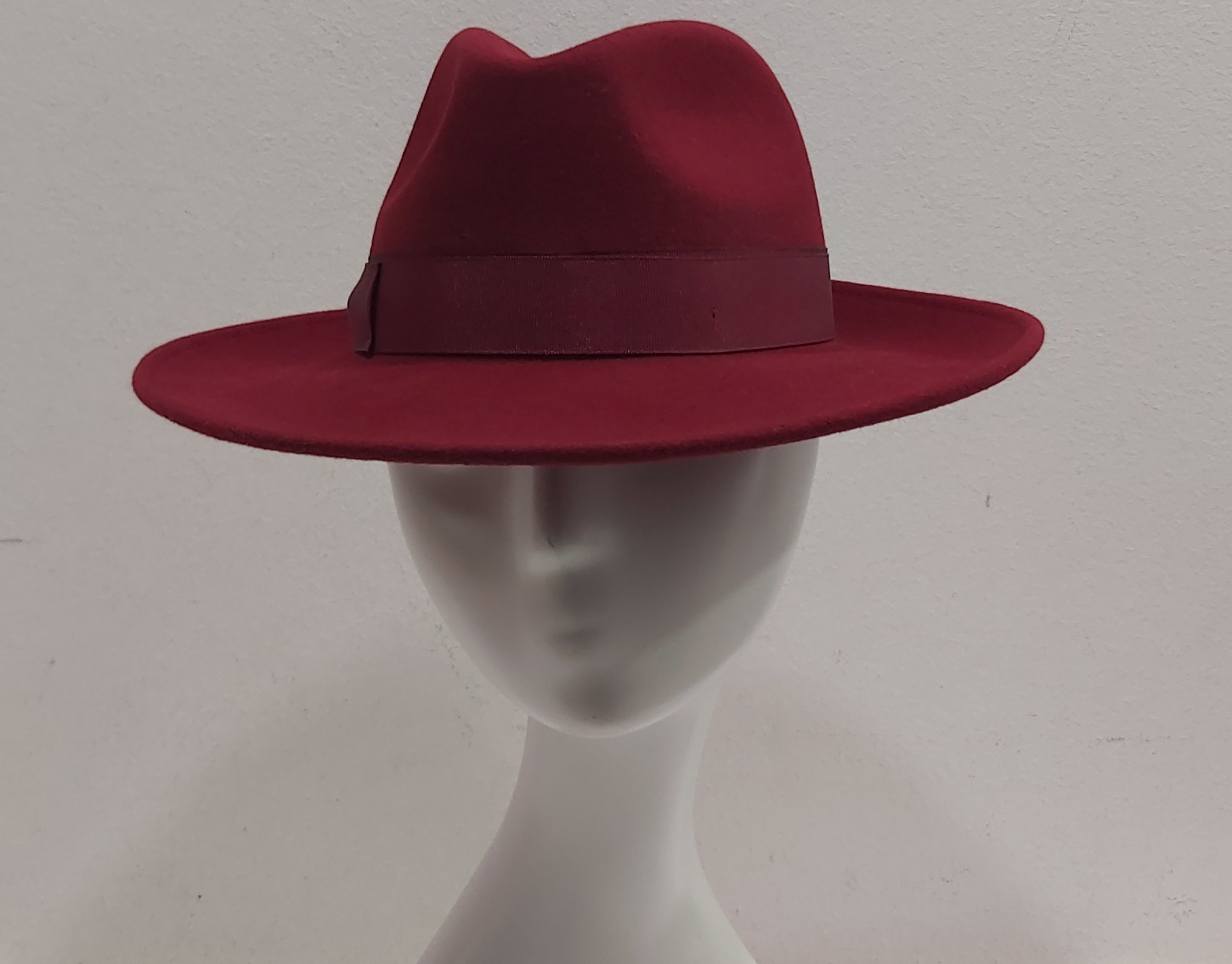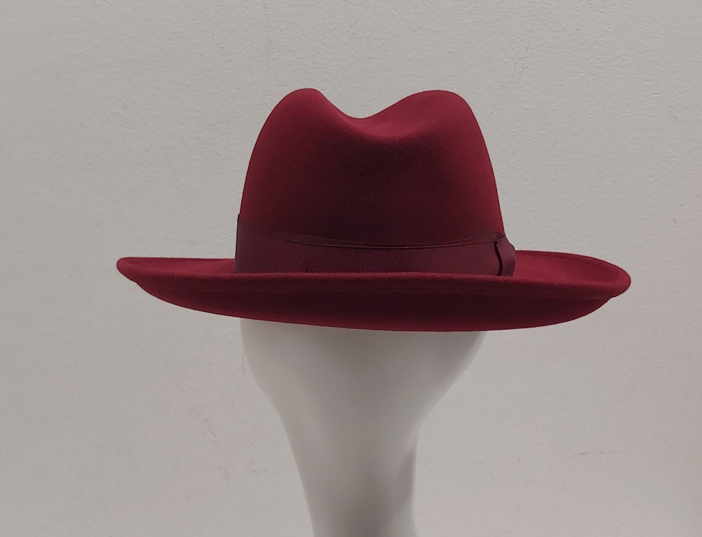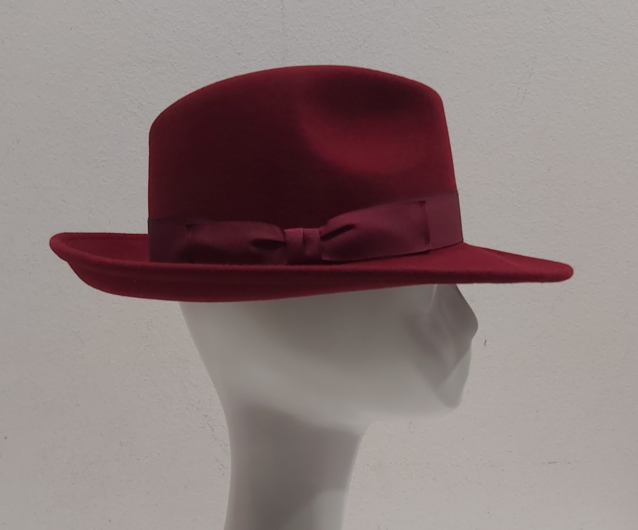 CAPPELLO ROSSO SCURO BORDO’ FELTRO LANA FEDORA TIPO BORSALINO MADE IN ITALY