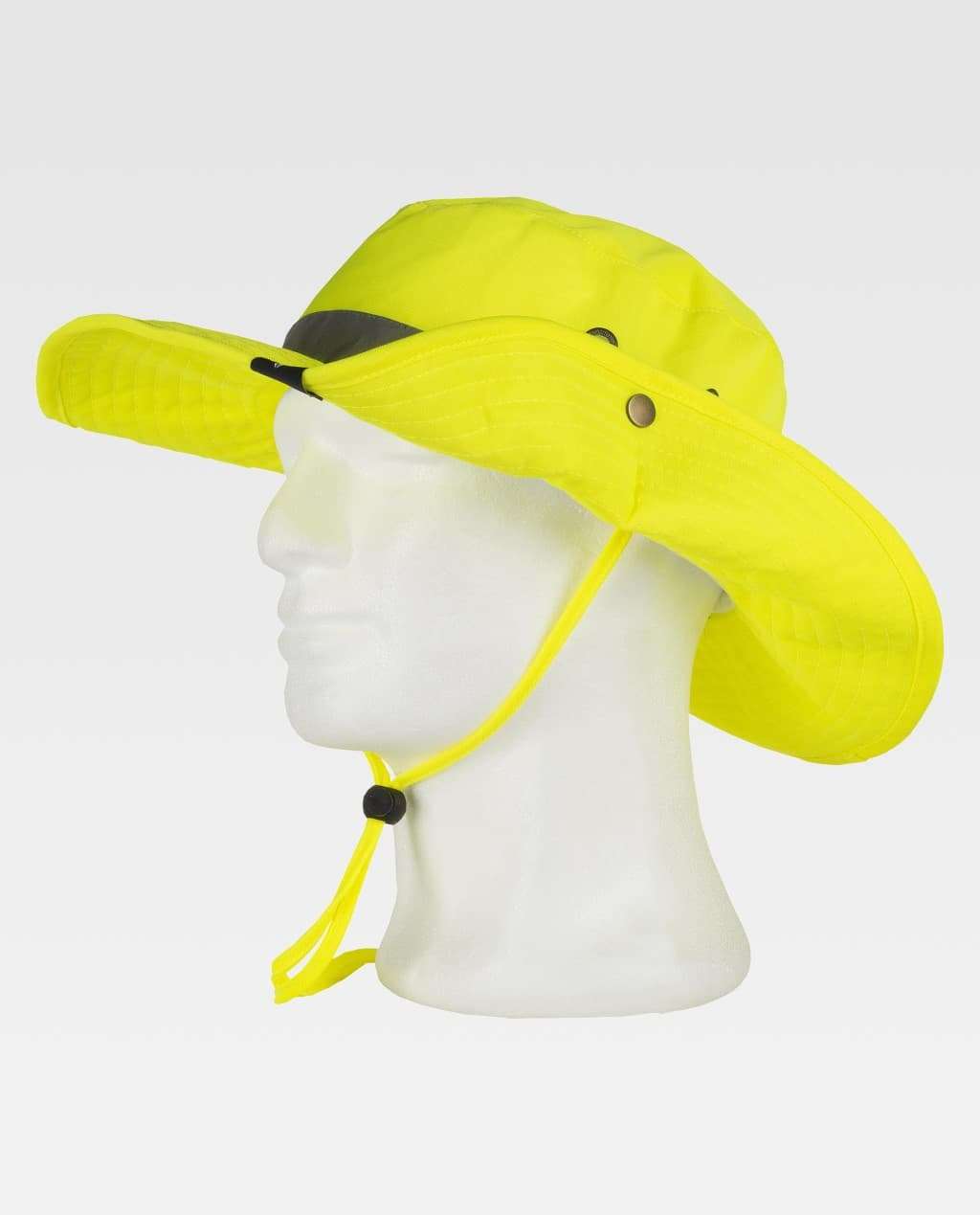 Cappello tipo safari Alta Visiblità Dimensioni regolabili con bottoni automatici e cordoncino. Interno foderato, occhielli di traspirazione. Banda Rifrangente Materiale: 100% POLIESTERE