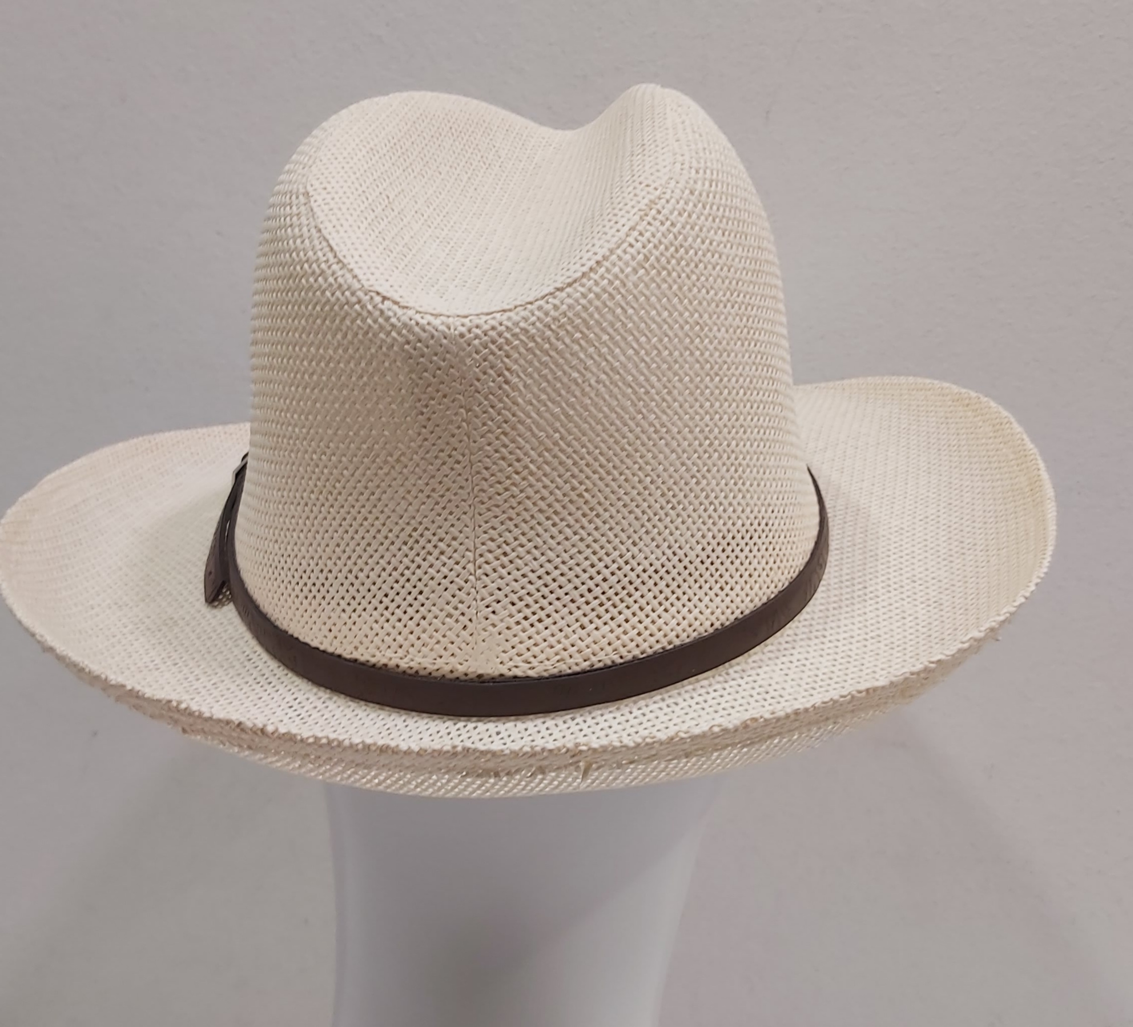 CAPPELLO UOMO PAGLIA TESA LARGA BIANCO PANNA TRAFORATO MADE IN ITALY MISURA 57