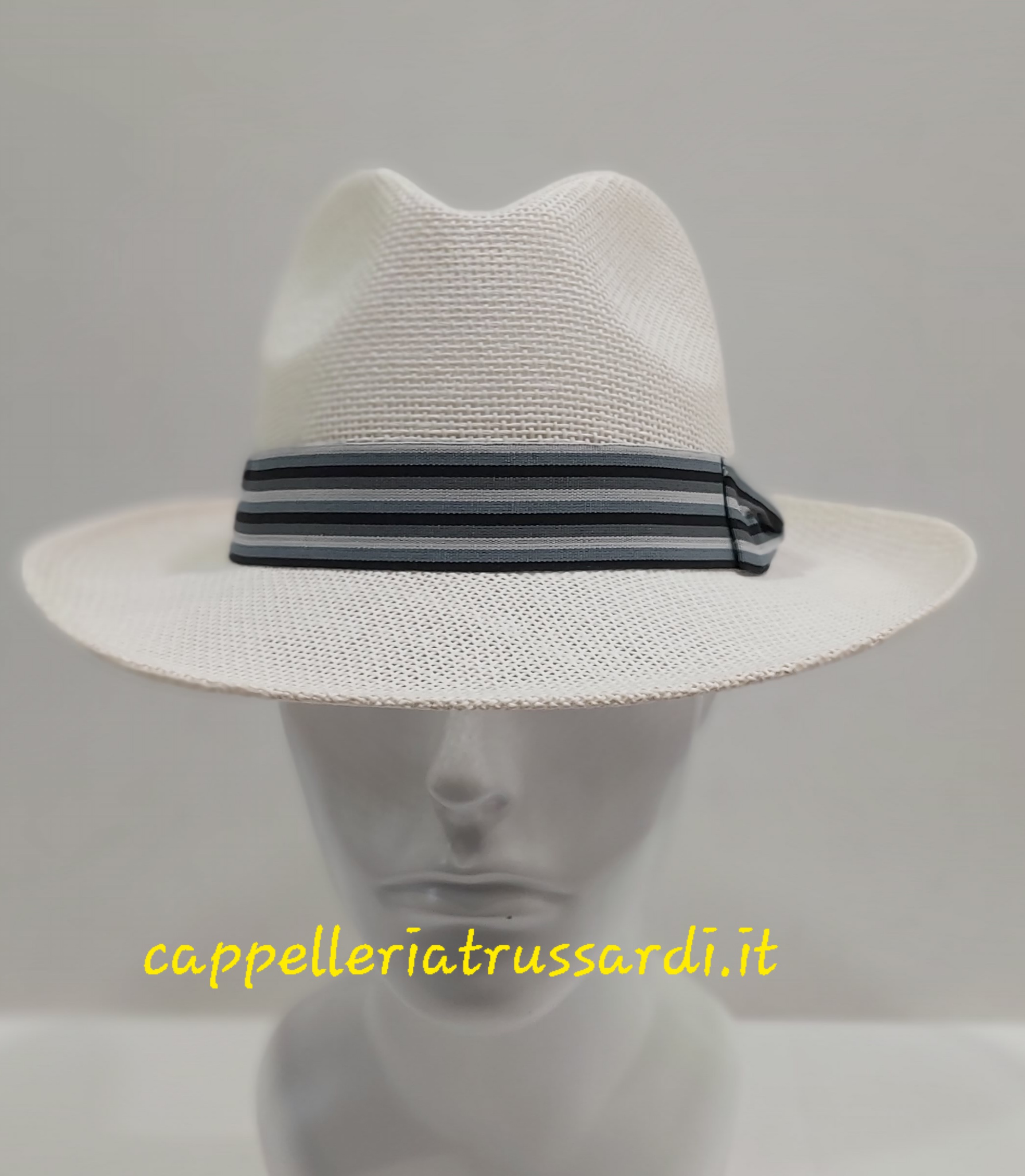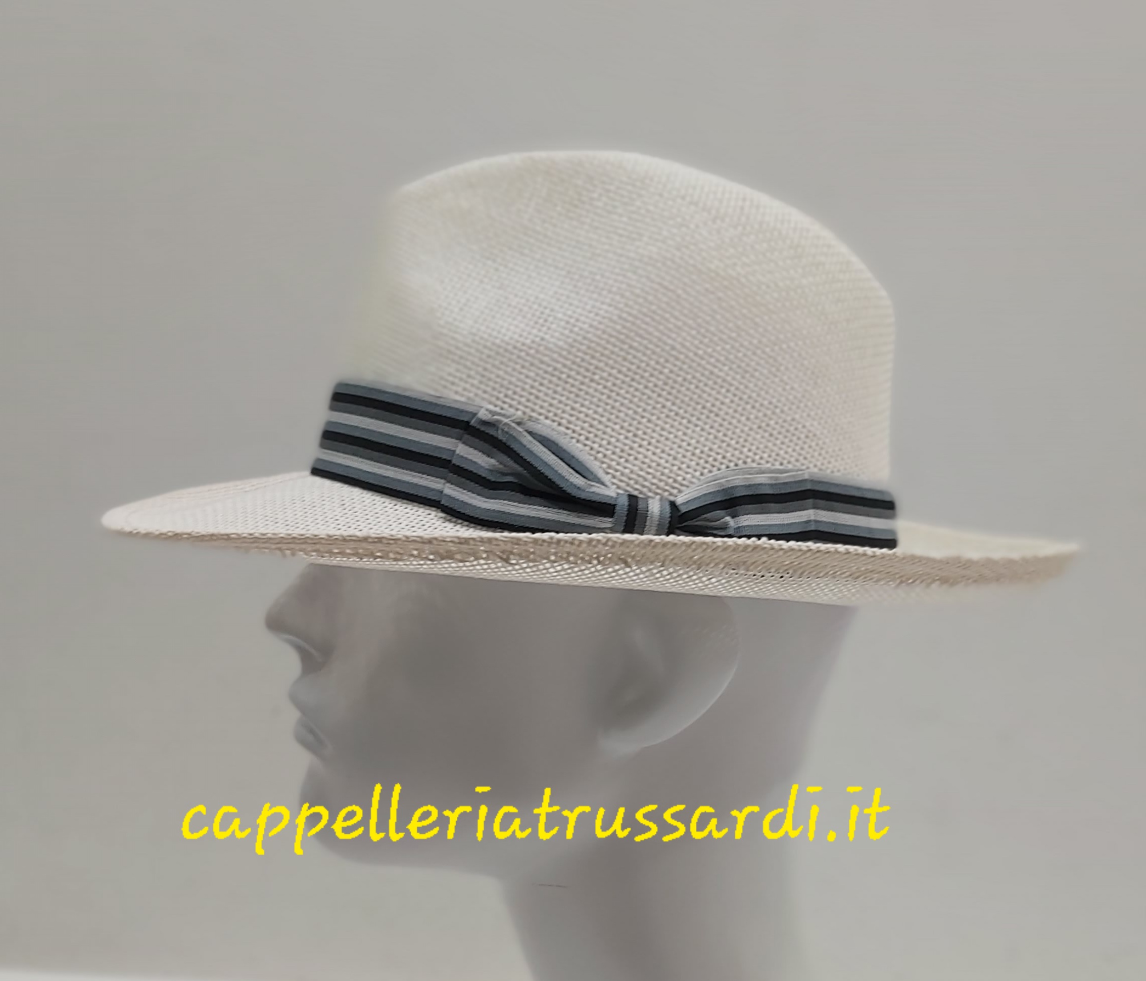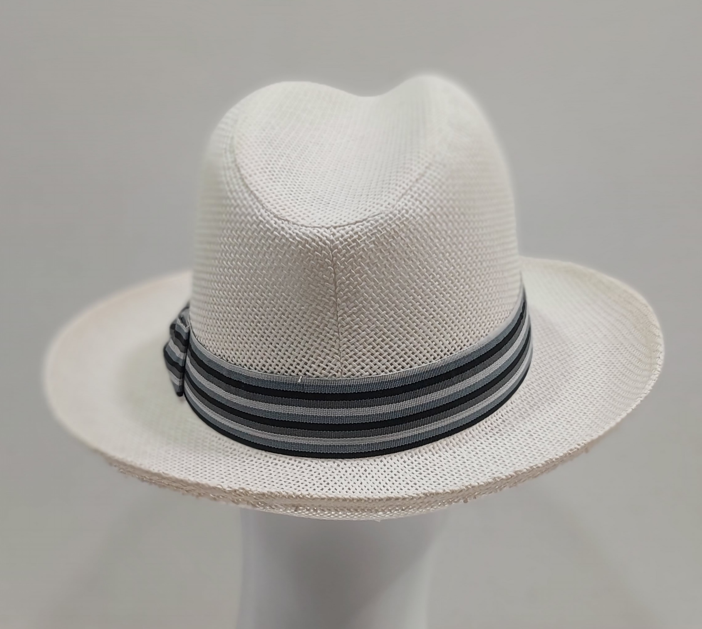 CAPPELLO UOMO PAGLIA TESA LARGA FASCIA RIGHE GRIGIE TRAFORATO COME FOTO