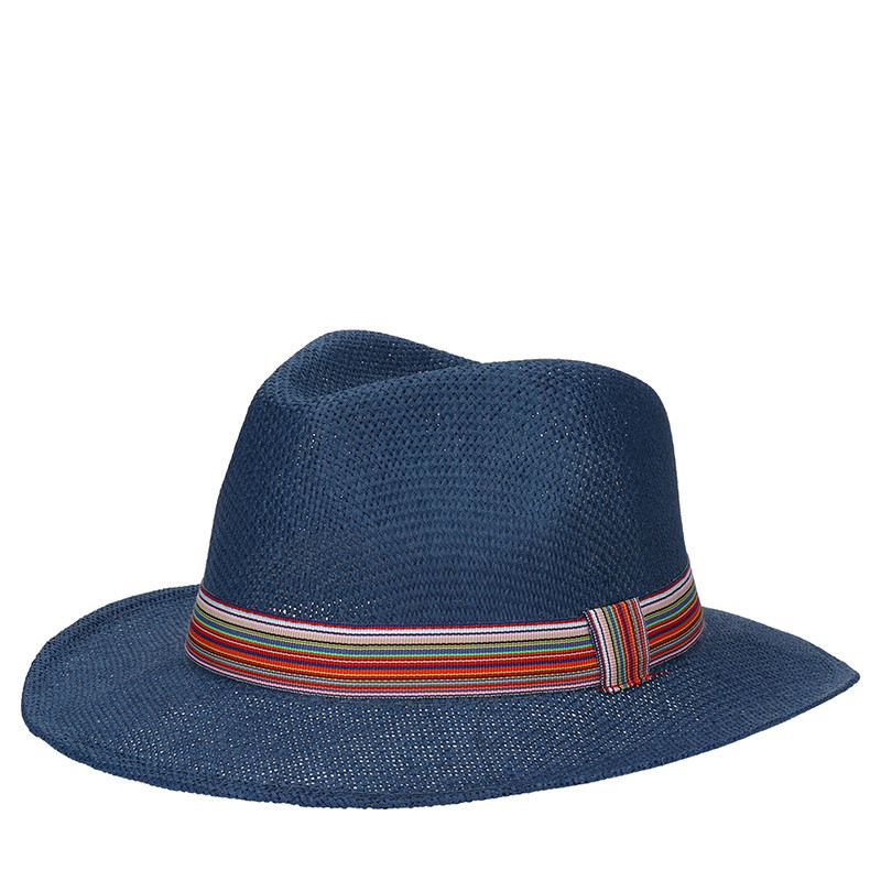 CAPPELLO UOMO PAGLIA TESA LARGA BLU MISURA M 59/60