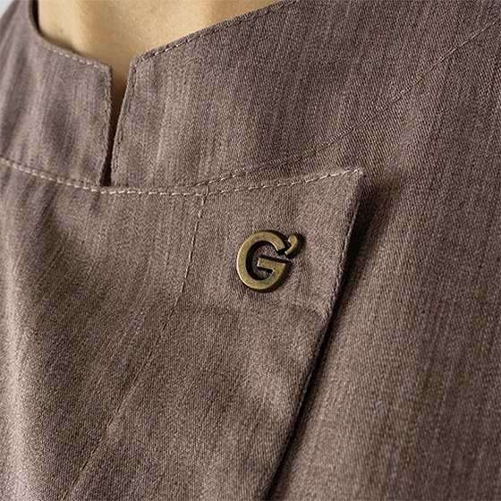 Il davanti รจ caratterizzato dalla presenza di due tasche e dallโautomatico logato โGโ, realizzato con una galvanica zapponata in nichel opaco che valorizza lo stile del capo.