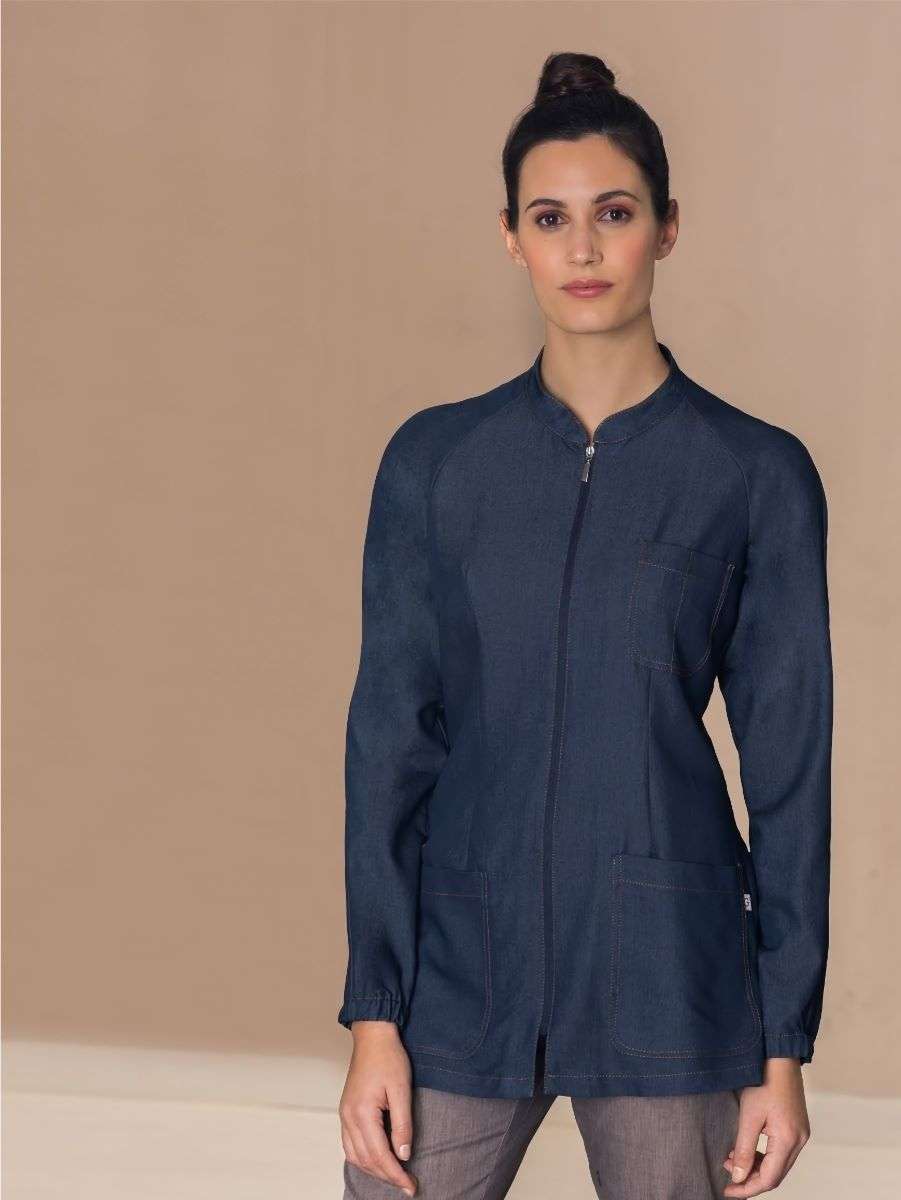La casacca Emily, versione femminile della casacca Remy, รจ interamente confezionata in un jeans morbido di poliviscosa elasticizzata