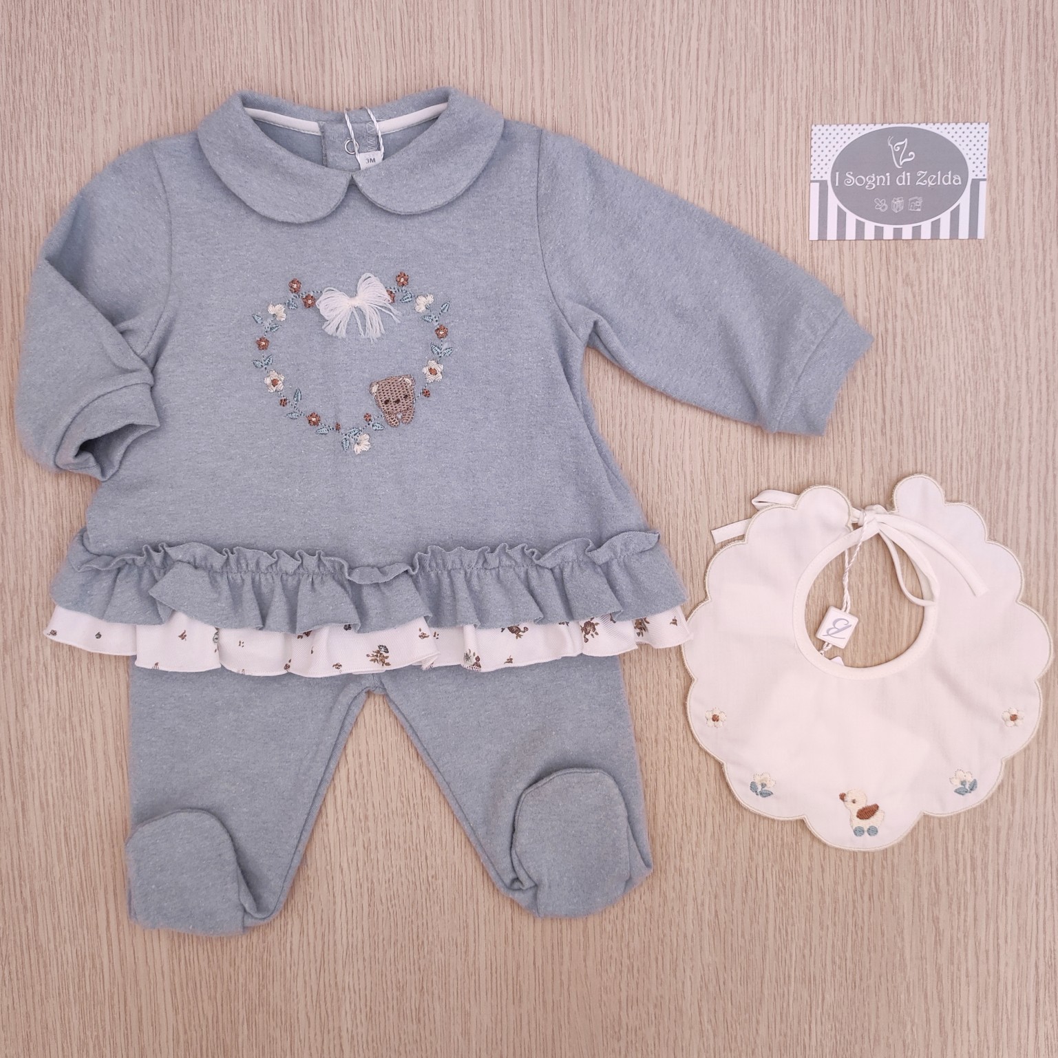 Completino Barcellino – Verde Polvere Fiorellini, in caldo cotone con bavetta