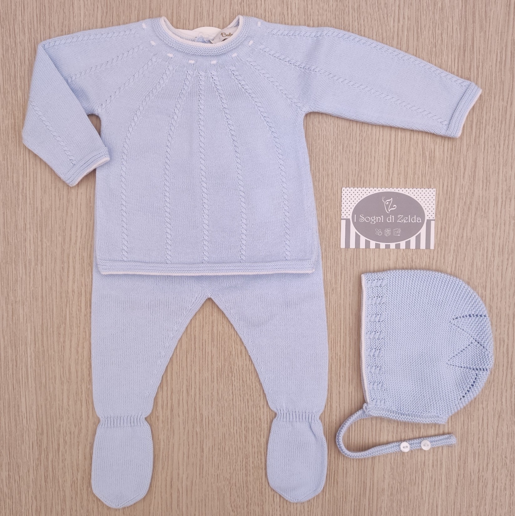 Completino nascita Babydif – Celeste/Bianco, comprende cuffietta