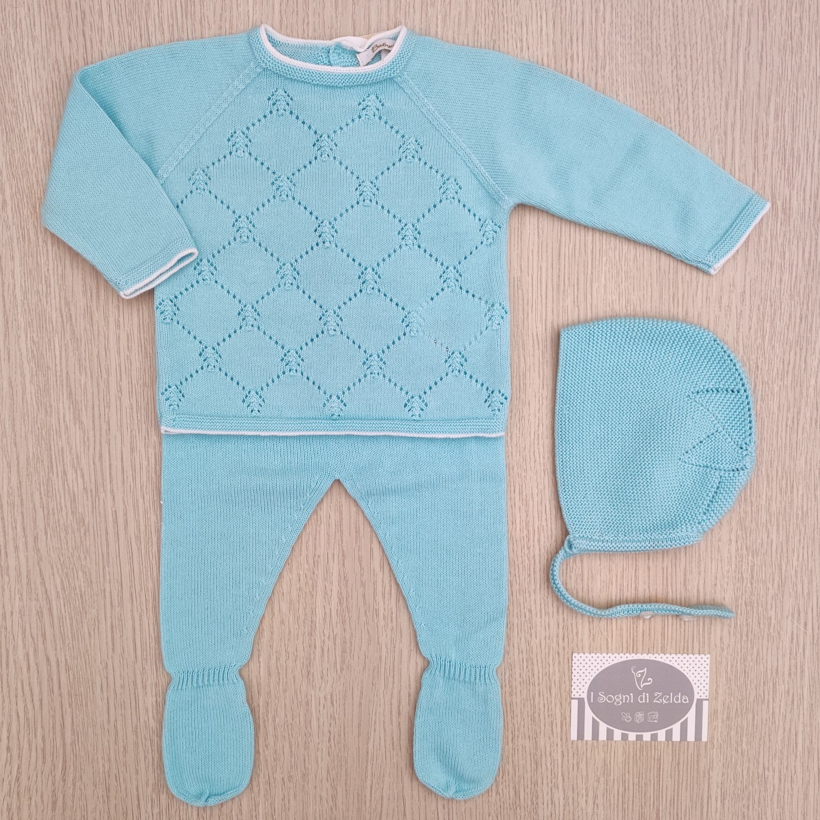 Completino nascita Babydif – Mar, comprende cuffietta 1 mese (56cm) – Cotone 100% – Made in Spain cod. 836061