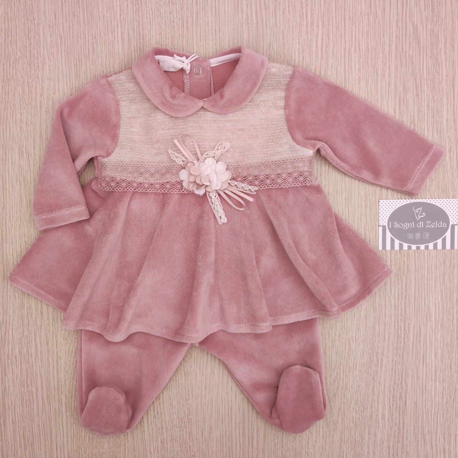 Completino nascita Ninnaoh – Pizzo Rosa Antico in ciniglia