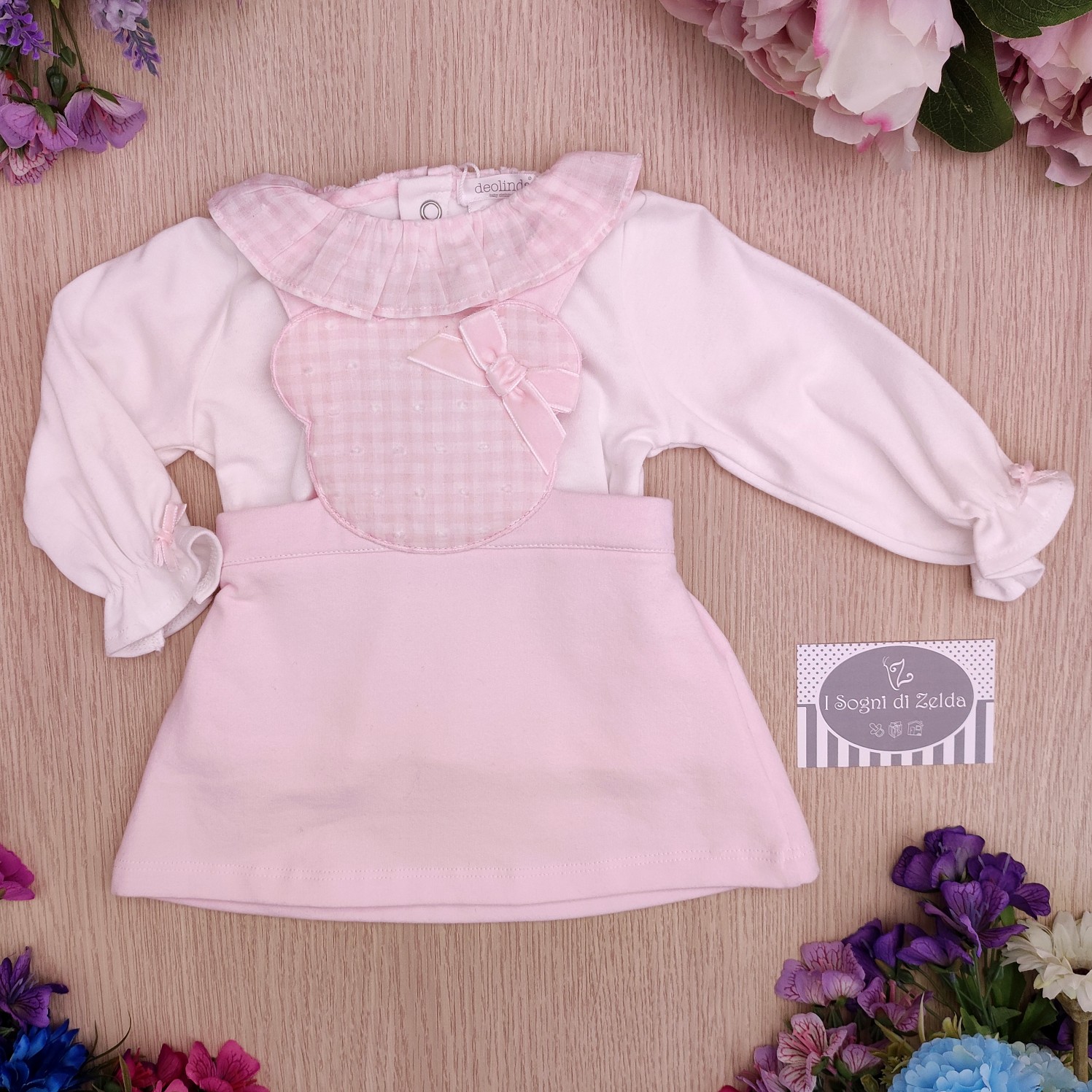 Completo Deolinda – Orsetta Rosa, con maglia e salopette in caldo cotone