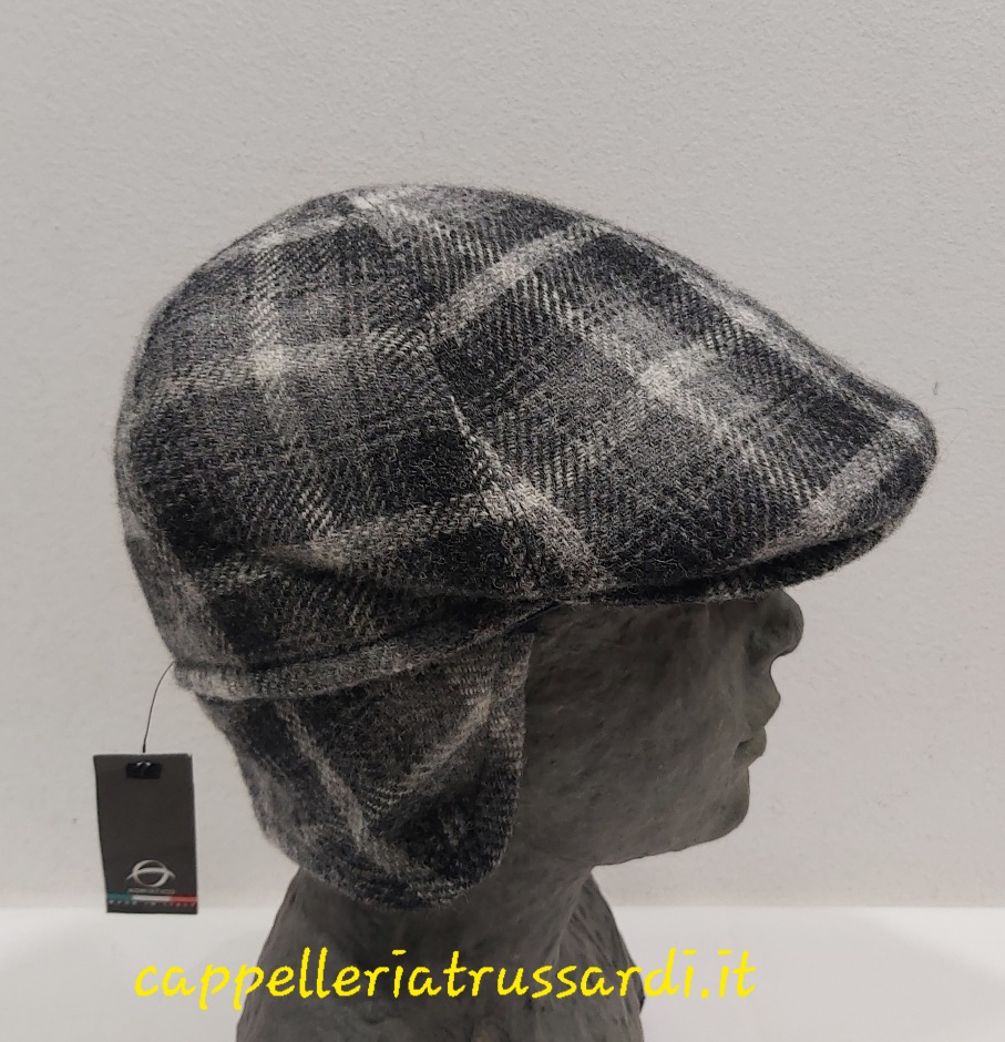 COPPOLA BERRETTO CON PARAORECCHIE GRIGIO SCOZZESE MADE IN ITALY misura 55