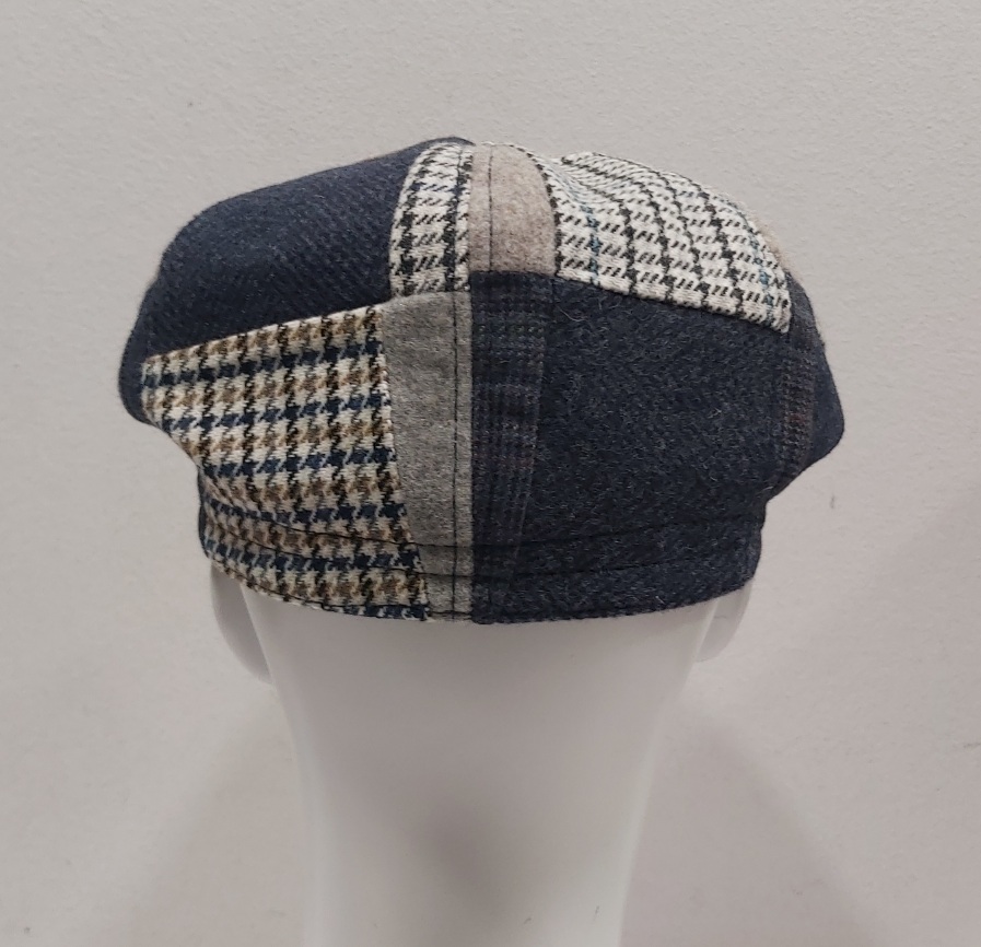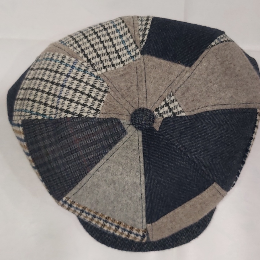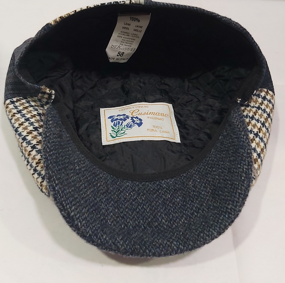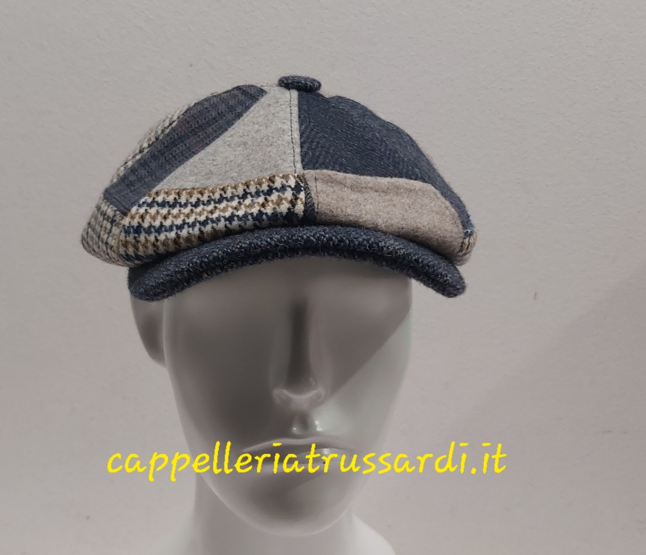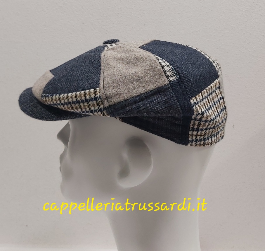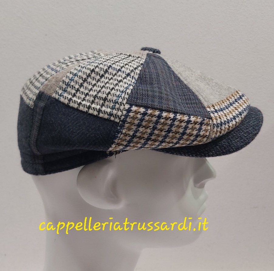 COPPOLA BERRETTO PATCHWORK 100% LANA BLU GRIGIO MADE IN ITALY PEAKY BLINDERS