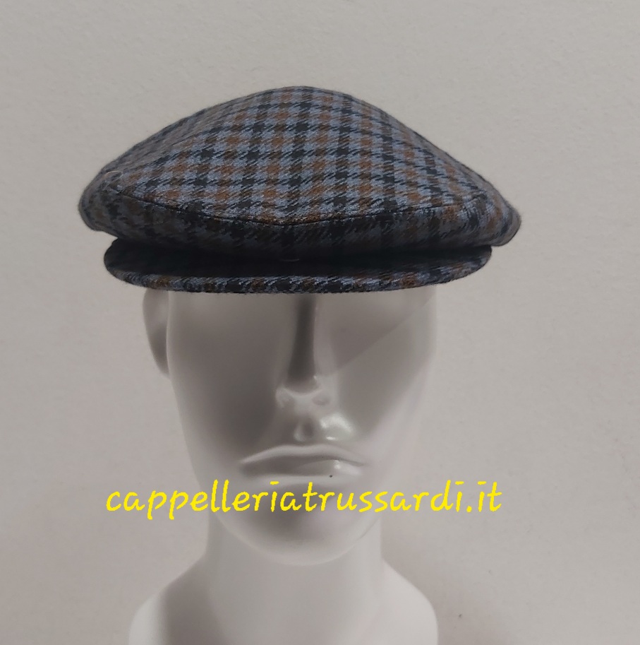 COPPOLA BERRETTO PIED DE POULE BLU LANA CASHMERE BARBISIO misura 60 MADE IN ITALY