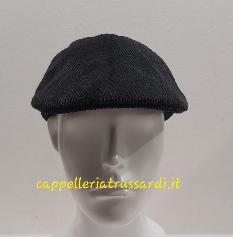 COPPOLA BERRETTO VELLUTO A COSTE NERO DENIM INVERNALE MADE IN ITALY