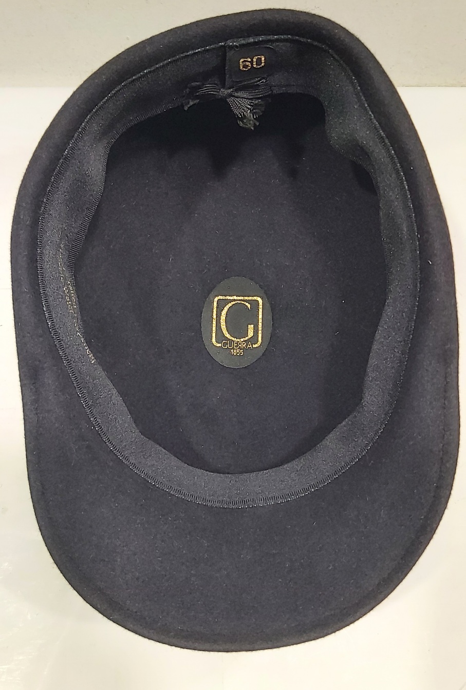Cappello classico di GUERRA nella sua forma originale Golf cap, leggero ed elegante realizzato in feltro di pelo di coniglio, dalle note proprietร idrorepellenti. Sfoderato, ma con fascia interna in grosgrain per garantire una calzata piรน confortevole. Logo GUERRA sul fianco della coppola.