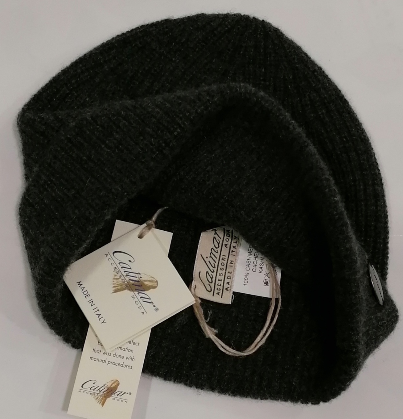 CUFFIA A COSTE CON RISVOLTO COLORE GRIGIO SCURO COME FOTO TARGHETTA REMOVIBILE 100% CASHMERE TAGLIA UNICA MADE IN ITALY BY CALIMAR