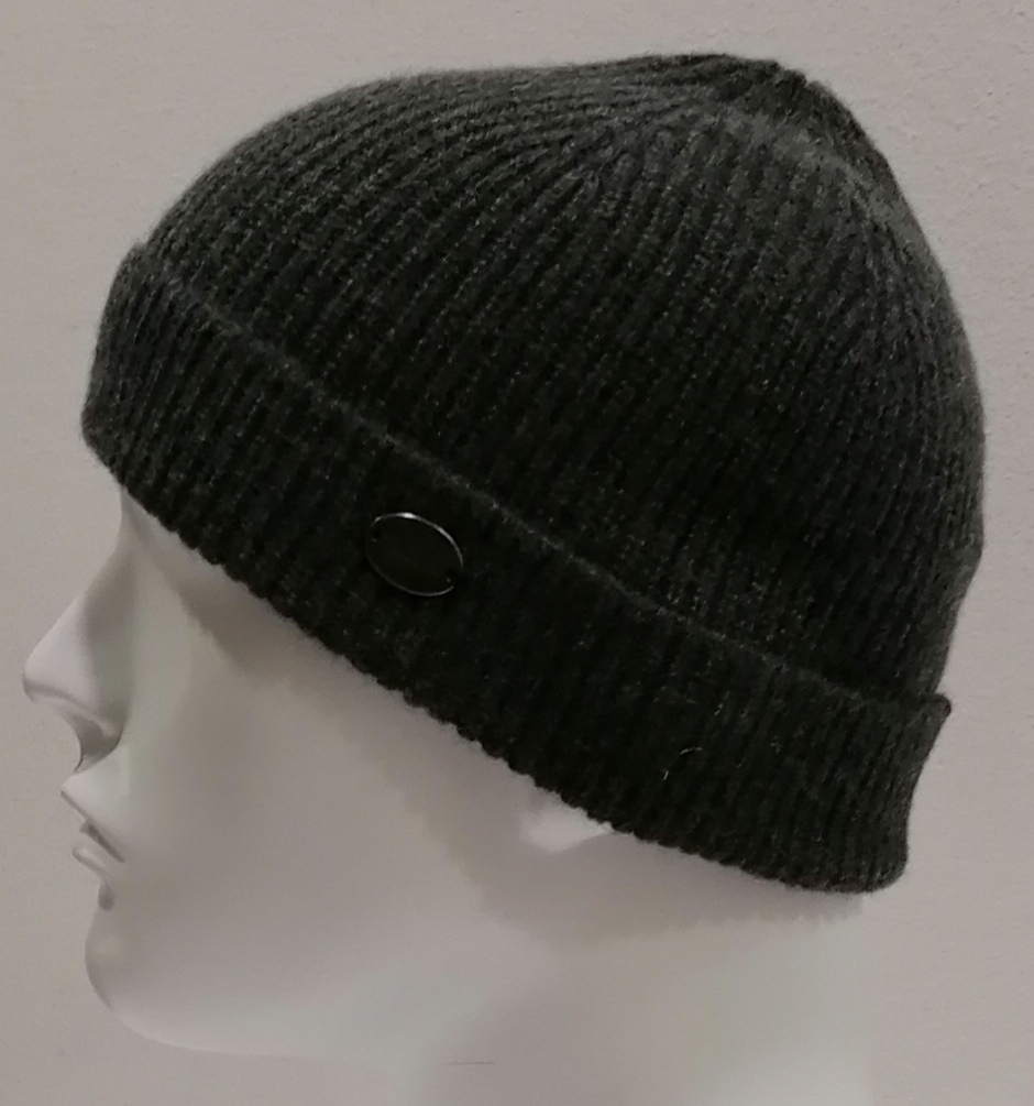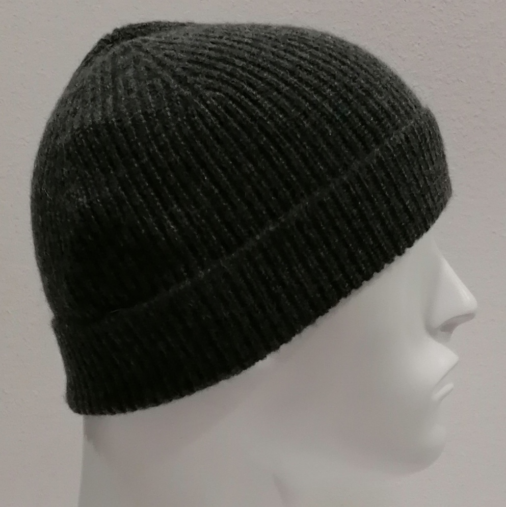 CUFFIA A COSTE CON RISVOLTO 100% CASHMERE GRIGIO SCURO MADE IN ITALY