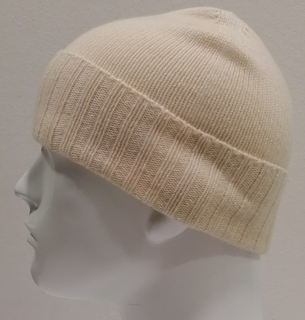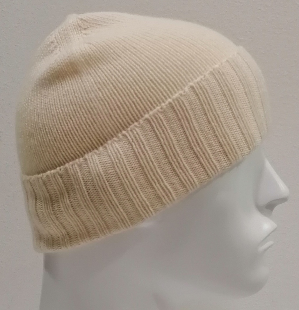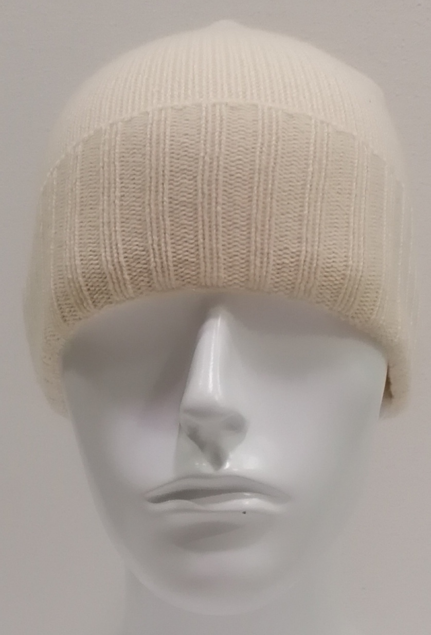 CUFFIA BERRETTA CON RISVOLTO A COSTE 100% CASHMERE BIANCO PANNA MADE IN ITALY