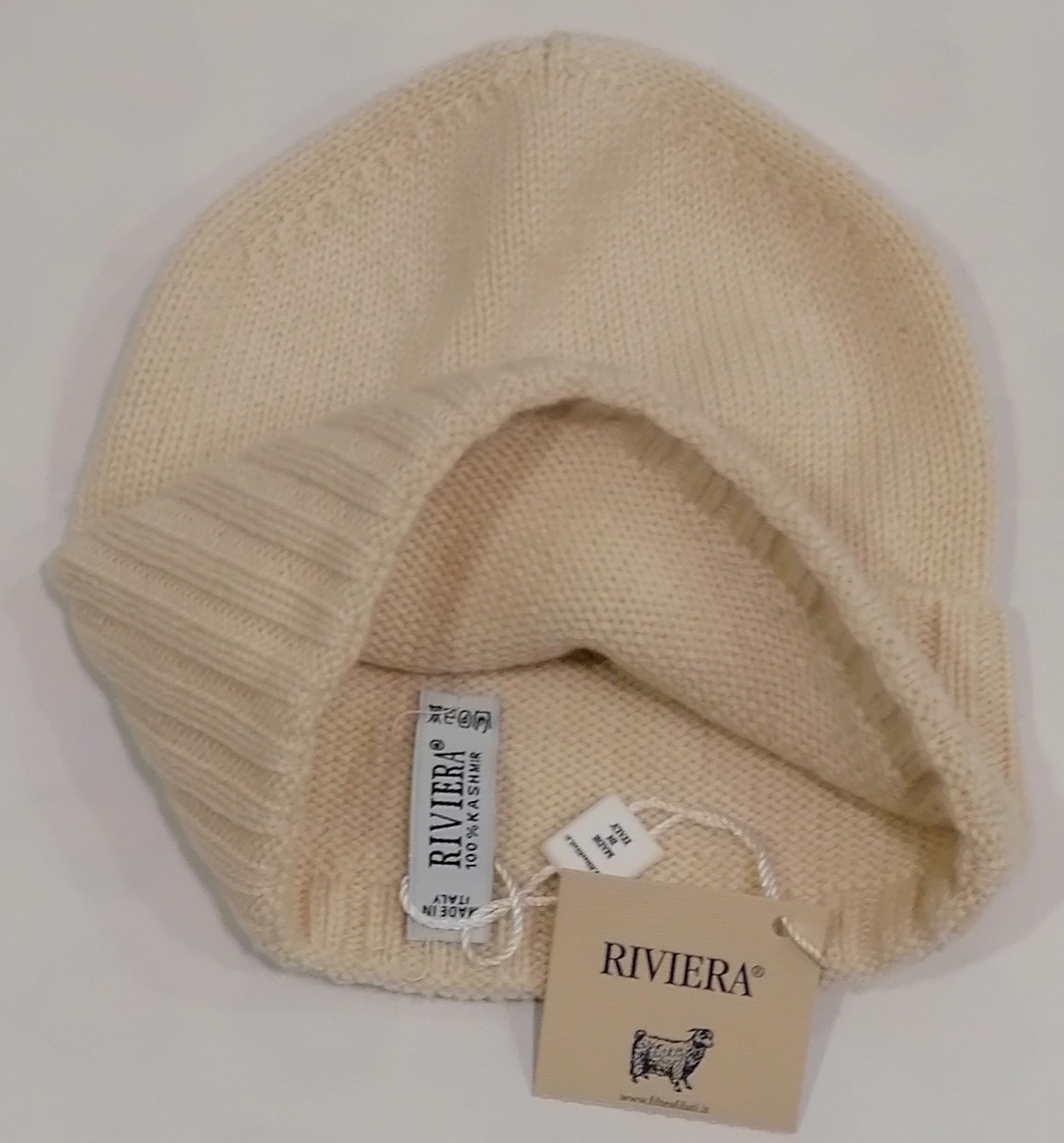 CUFFIA BERRETTA CON RISVOLTO A COSTE COLORE BIANCO PANNA COME FOTO 100% CASHMERE TAGLIA UNICA MADE IN ITALY