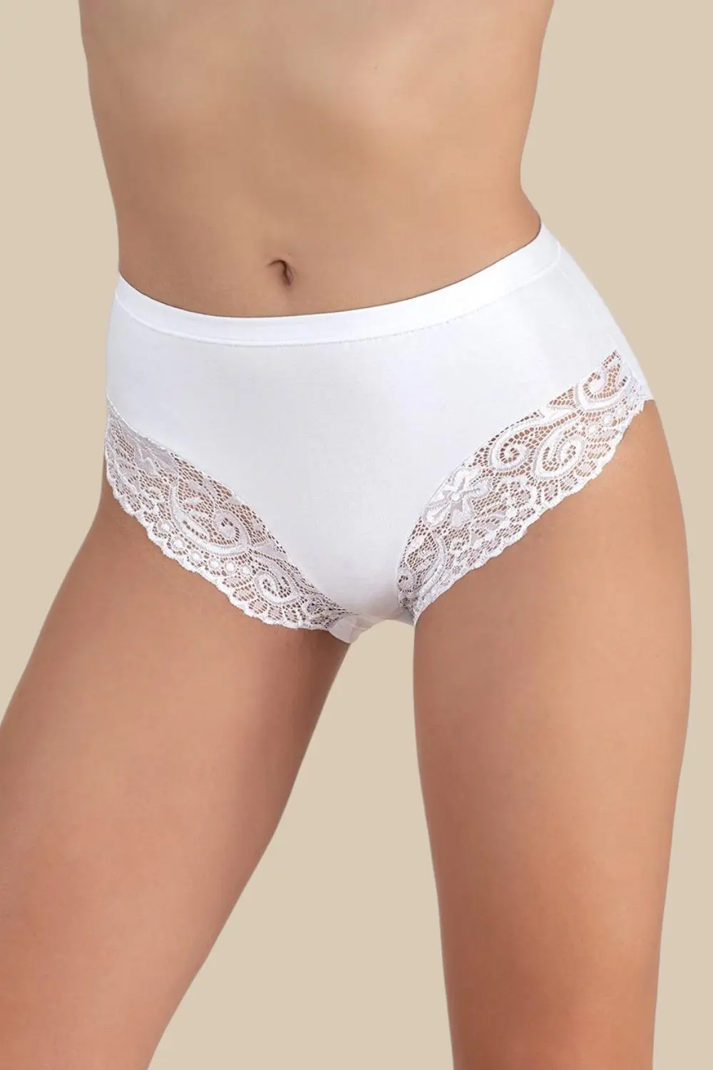 Culotte in cotone e pizzo smerlato disponibile nei colori bianco, nero e soft beige. 100% prodotto in Italia Cotone certificato OEKO-TEXยฎ โ GUIDA ALLE TAGLIE