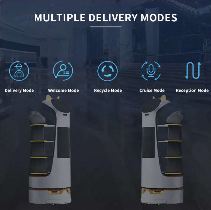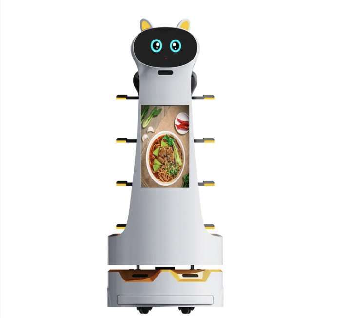 Svolge funzioni per i servizi nella ristorazione di cameriere, dispone di schermo per facilitare le operazioni di ordinazione e consegna.