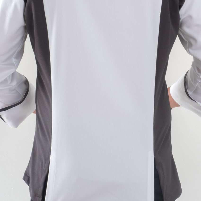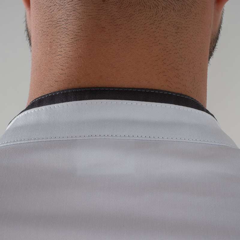 Fianchetti laterali sia nel fronte che nel retro sono in morbida maglia di piquet, a contrasto nella variante bianca e in tinta nella variante nera.