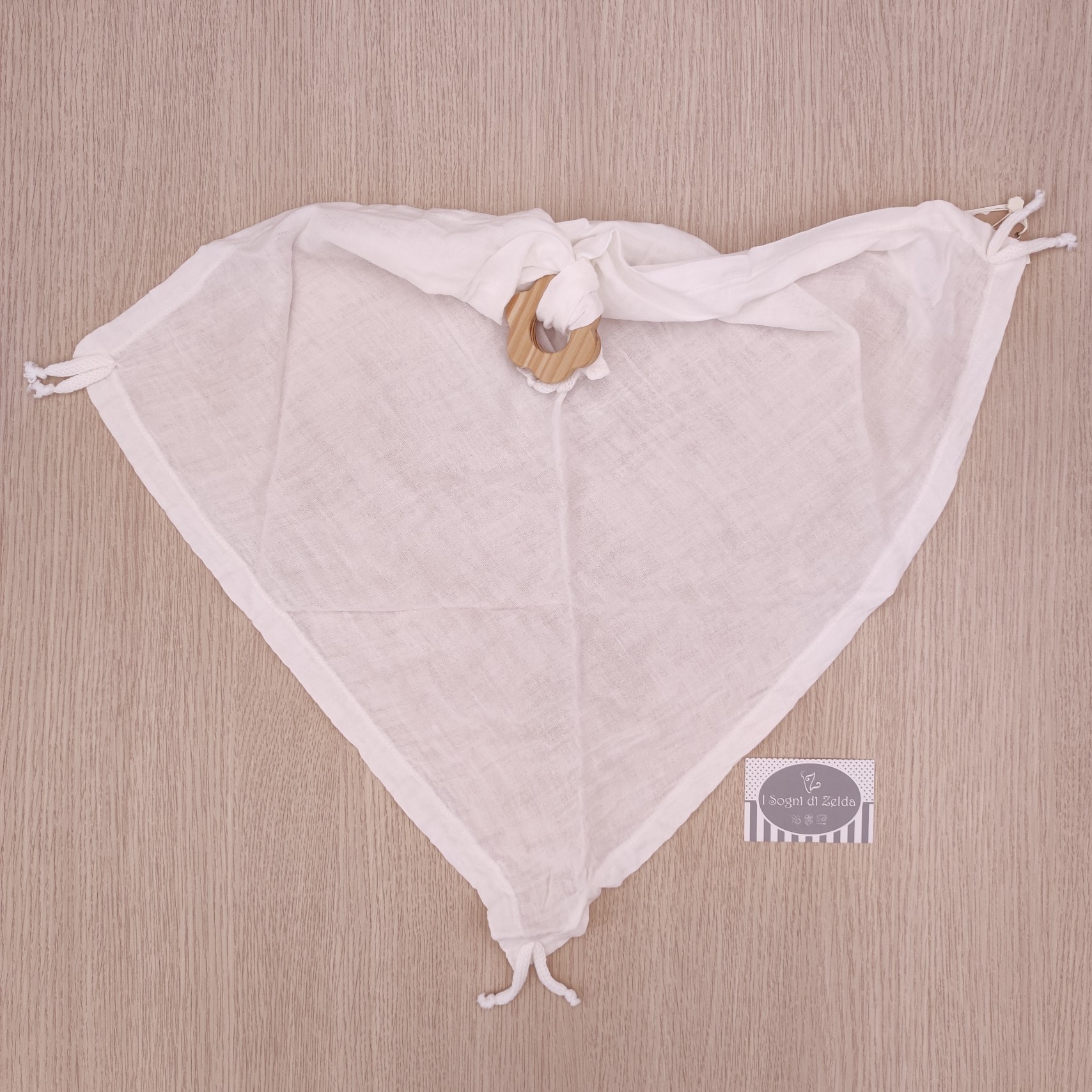 Mussola Doudou con dentaruolo in Legno – Wedoble – Bianco