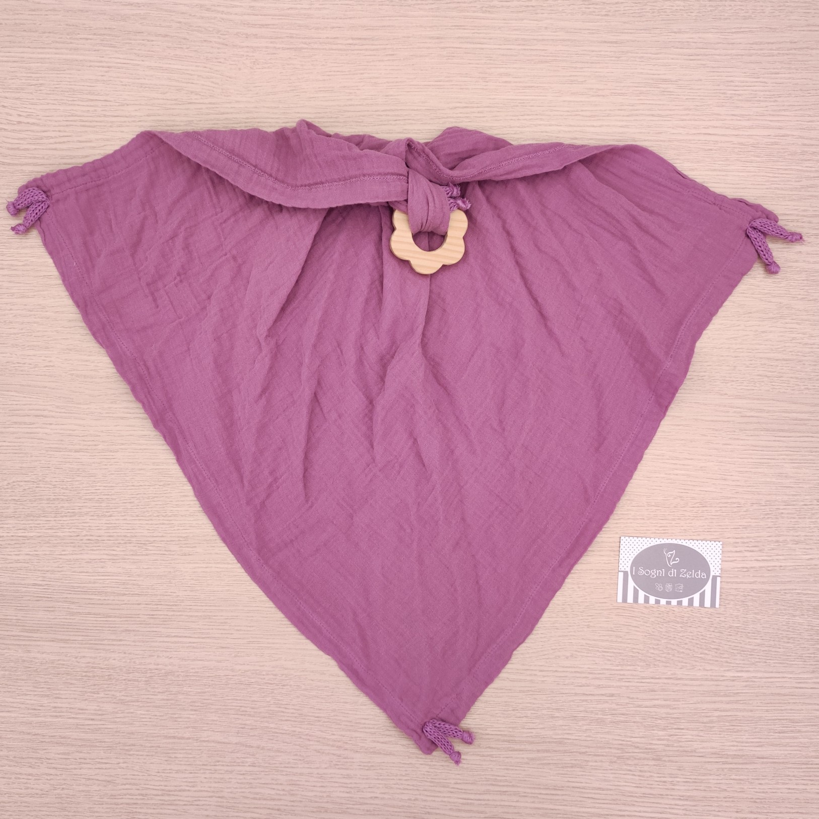 Mussola Doudou con dentaruolo in Legno – Wedoble – Malva