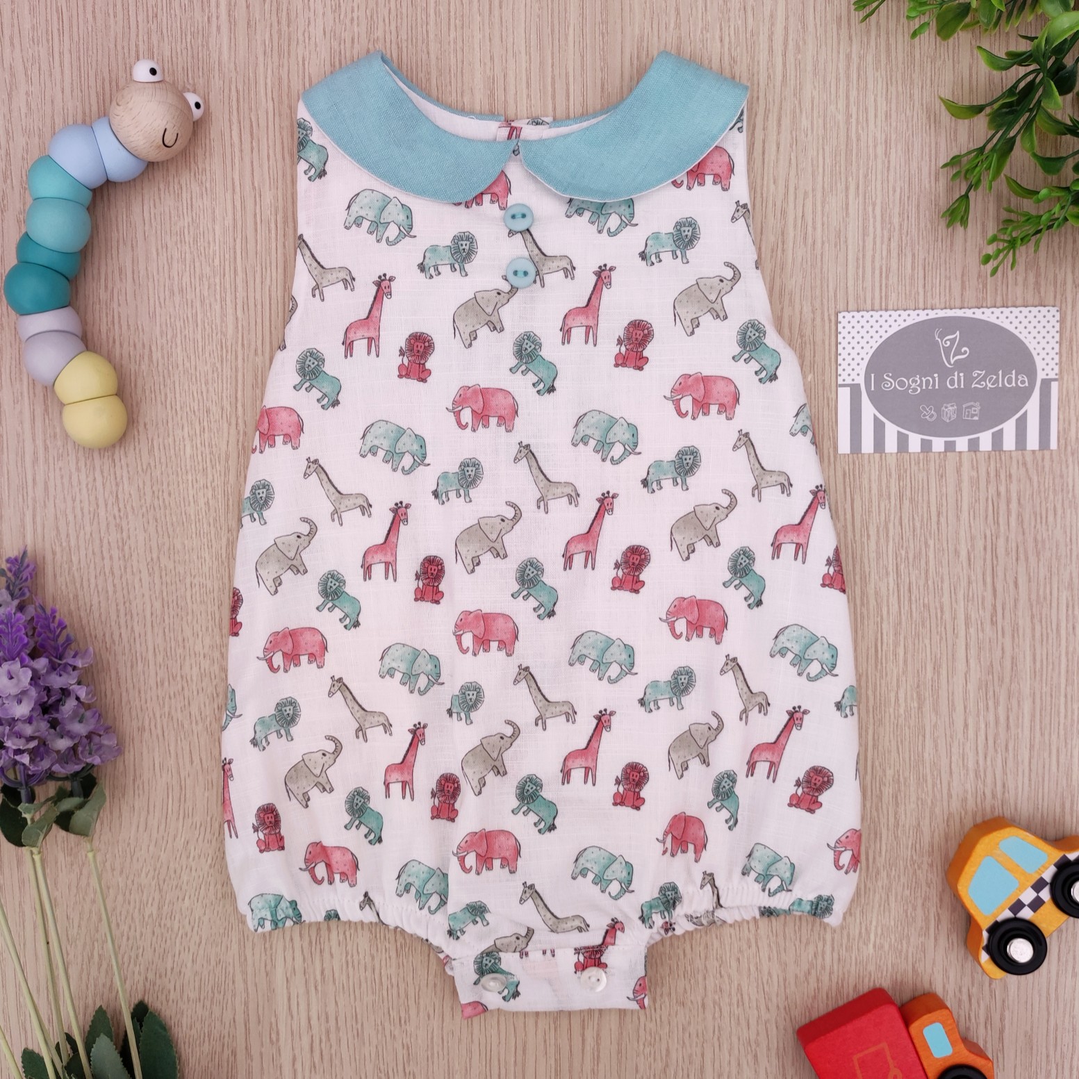 Pagliaccetto Juliana – Verde Lago Savana 1 mese, 6 mesi, 12 mesi – 100% cotone – Made in Spain