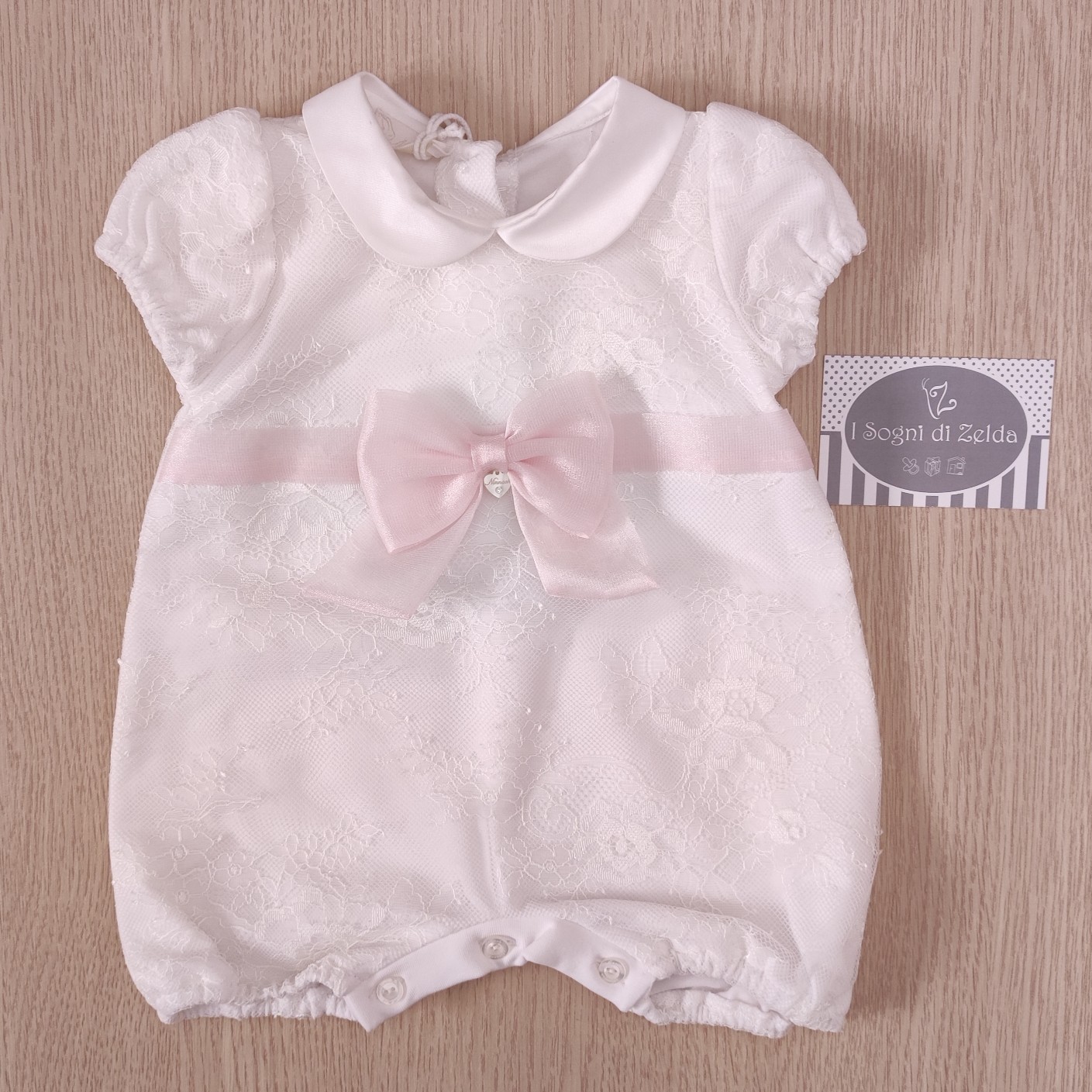 Pagliaccetto Ninnaoh – Bianco Fiocco Rosa 1 mese (56cm), 3 mesi (62cm) – 96% Cotone, 4% Elastane –ย Made in Italy Cod: E2073