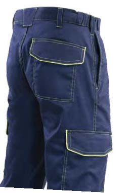 1 tasca posteriore chiusa con pattina e velcro, cuciture a contrasto e piping sulle tasche colore giallo fluo