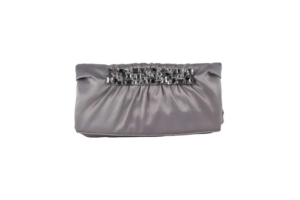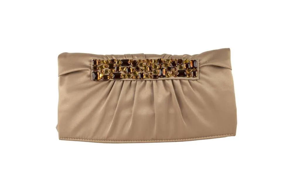 Pochette di tessuto decorata con pietre multicolore, con catena rimovibile e inserto interno