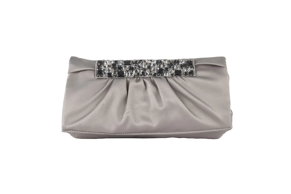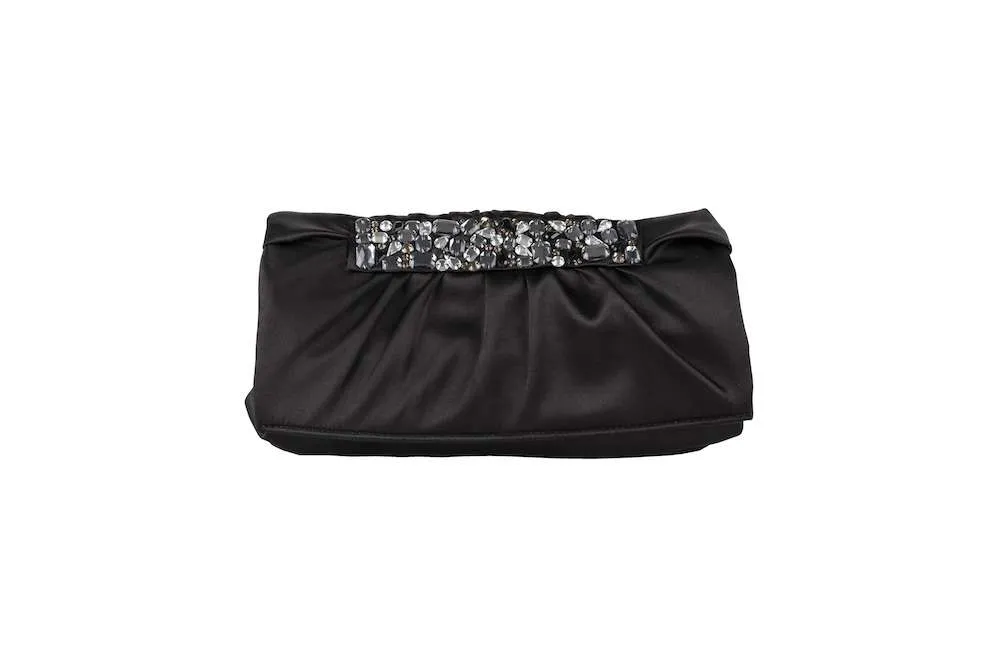 - COMPOSIZIONE: Pochette di tessuto decorata con pietre multicolore, con catena rimovibile e inserto interno