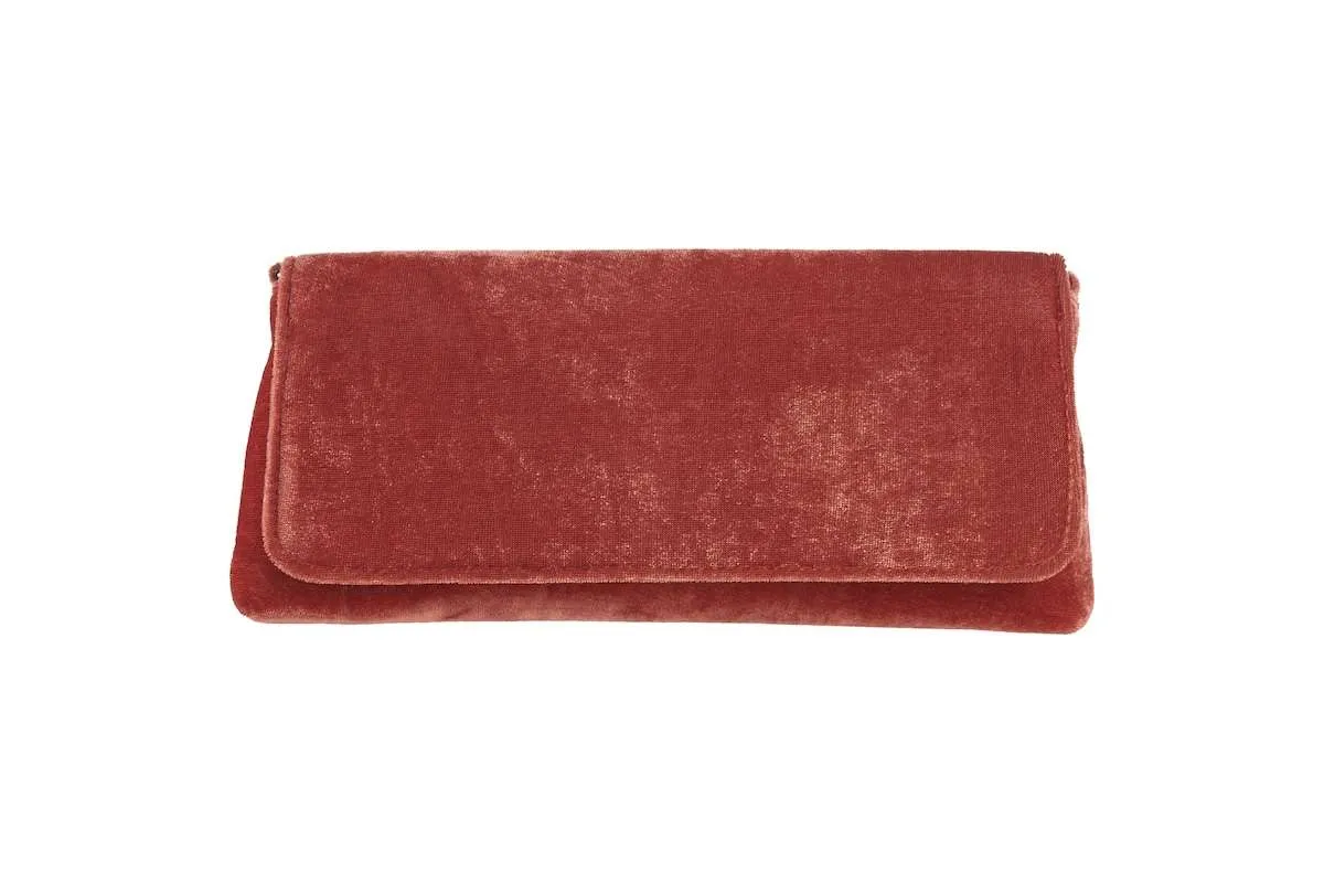 Elegante pochette-baguette in velluto ย adatta in tutte le occasioni. Dotata di pratica e versatile ย catena a scomparsa. Disponibile in raffinate colorazioni.
