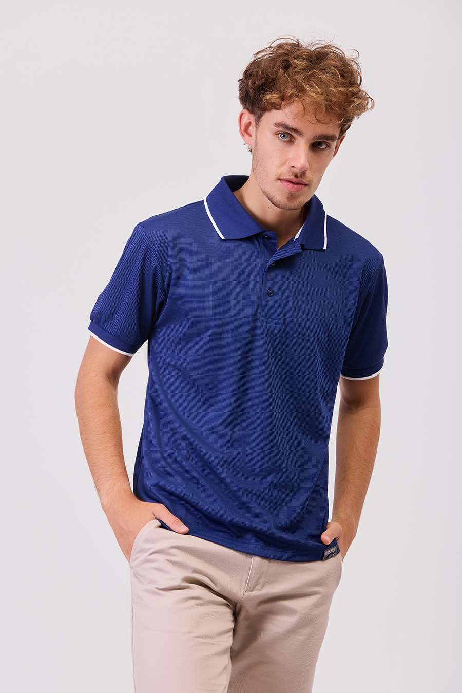 Polo bicolore manica corta in tessuto waffle (nido d’ape)