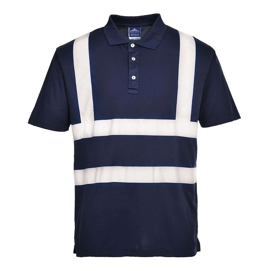 Questa polo ha una doppia banda riflettente ad alta visibilità per aumentare la visibilità di chi la indossa.