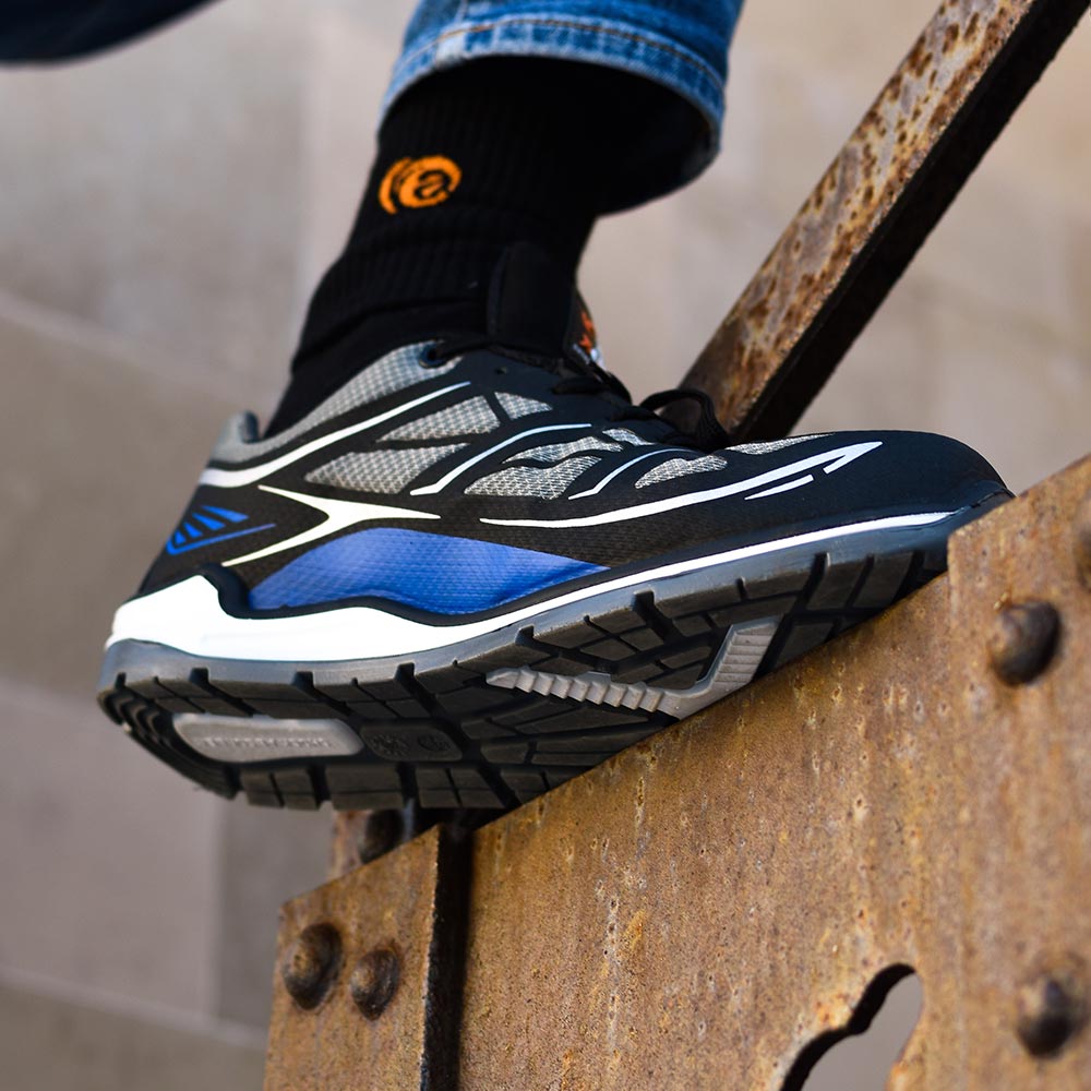 SUOLA ad iniezione diretta – bi-densitร PU/TPU 3 colori, antistatica, antiscivolo SRC, resistente agli oli e agli idrocarburi, assorbimento degli urti nella zona del tallone.