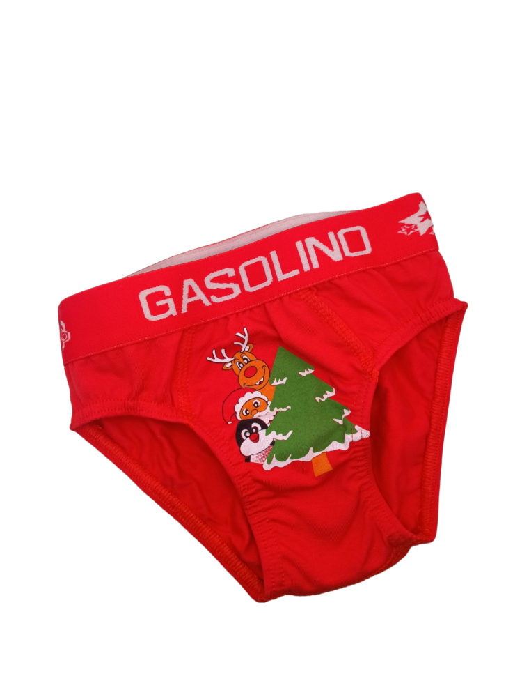 Slip bambino natalizio rosso Gasolino con scatolina. 90% Cotone 10% Elasticizzato