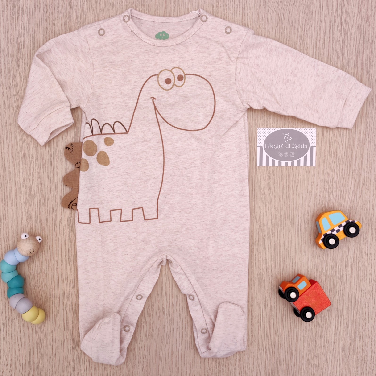 Tutina FS Baby – Beige Dinosauro, in jersey di cotone