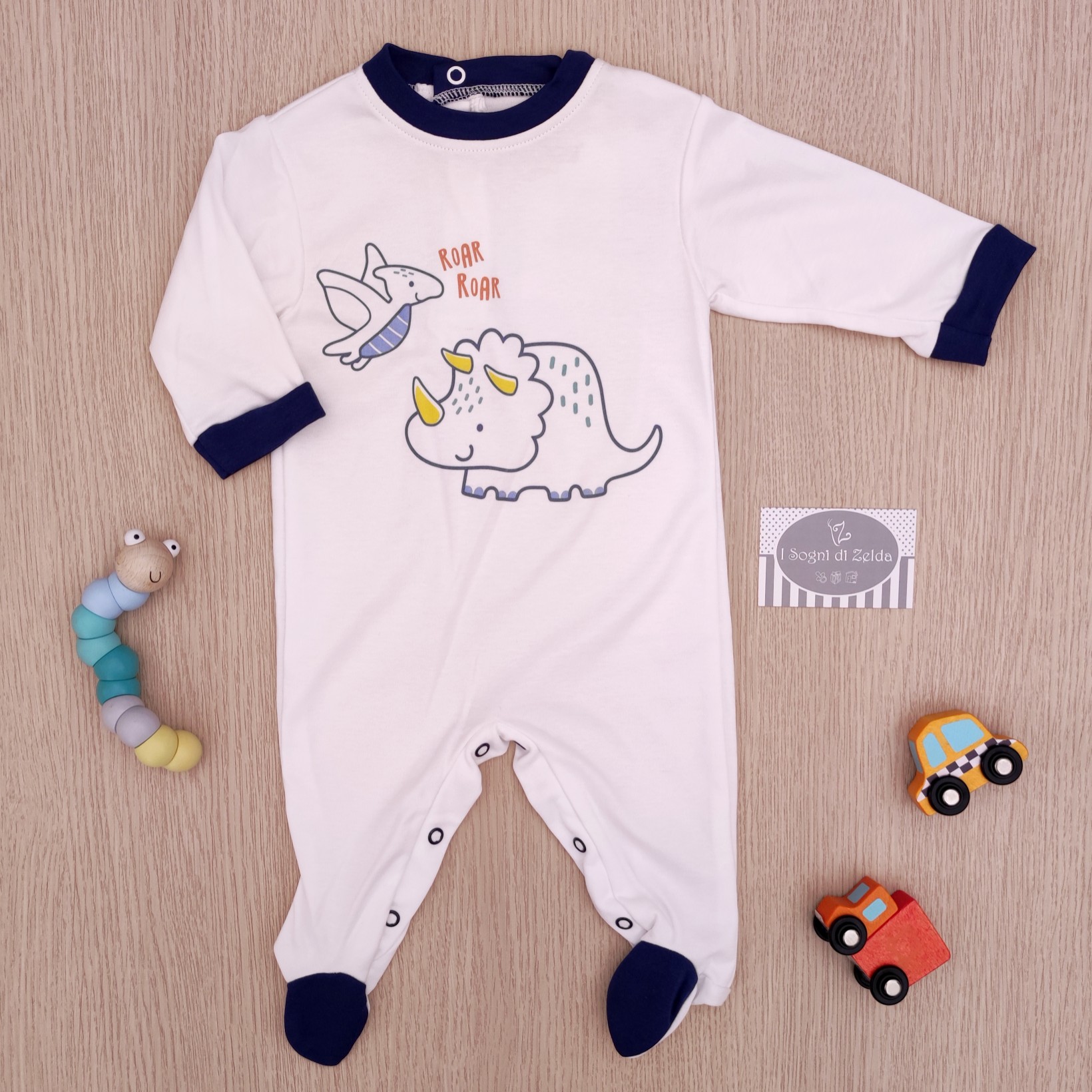 Tutina FS Baby – Bianco/Blu Dinosauri