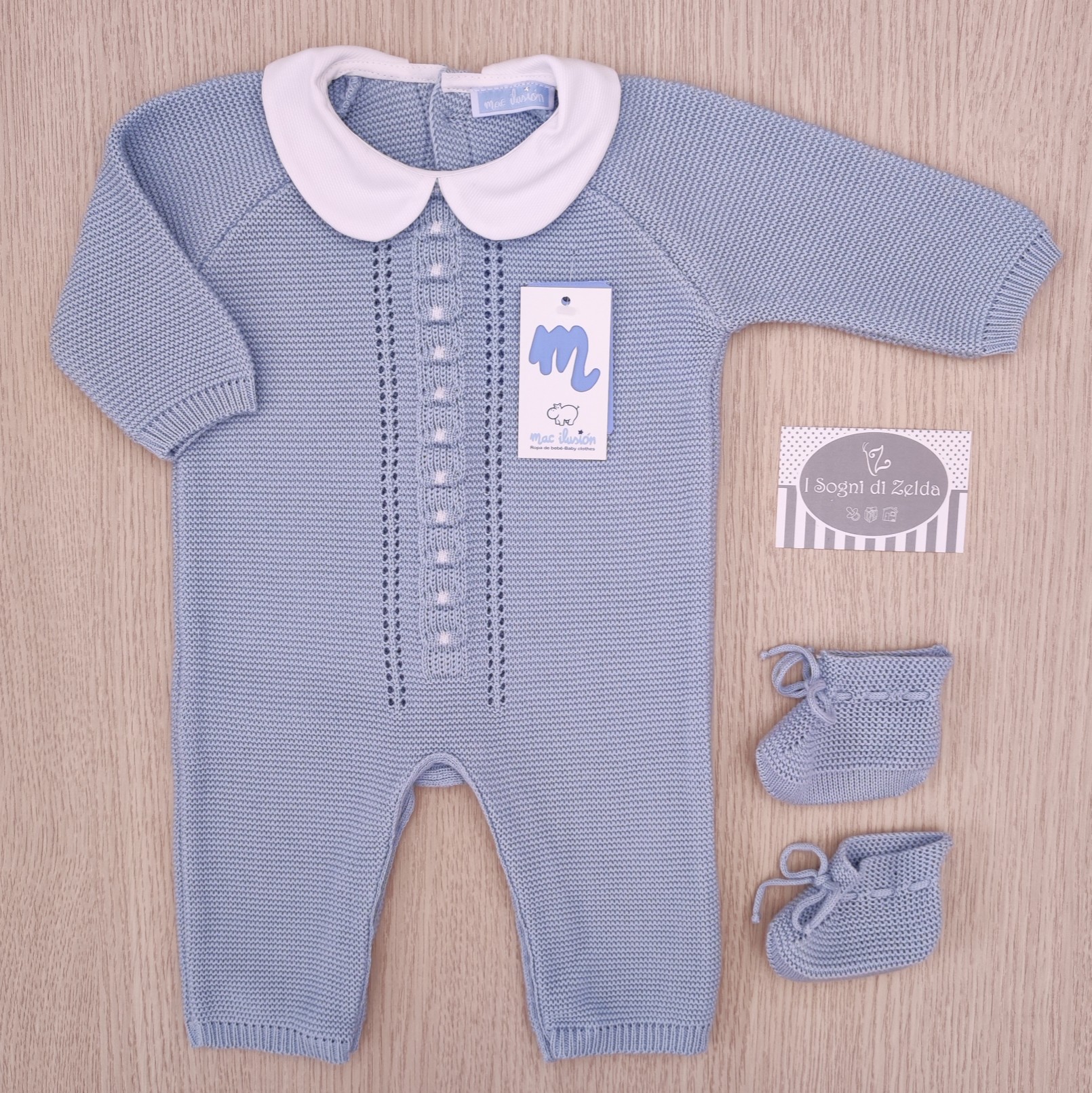 Tutina nascita Mac Ilusion – Brisa/Bianco, con scarpette 1 mese (56cm) – 50% cotone, 50% acrilico – Made in Spain cod: 9654