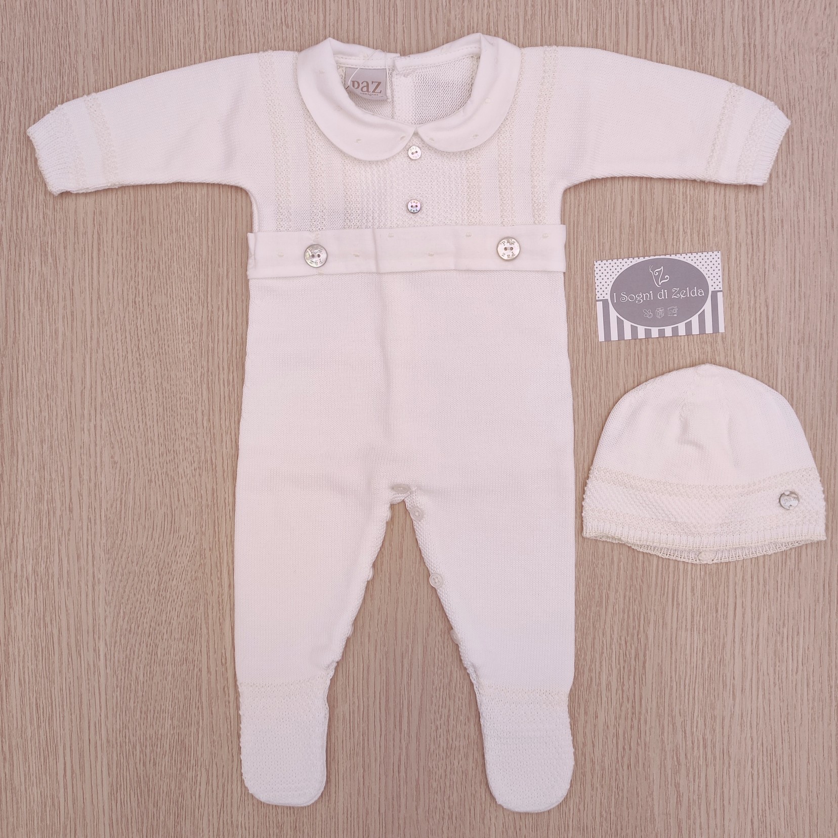 Tutina nascita Paz Rodriguez – Cream/Beige, con cappellino 1 mese (56cm) – Cotone 100% – Made in Spain cod: 005-122472