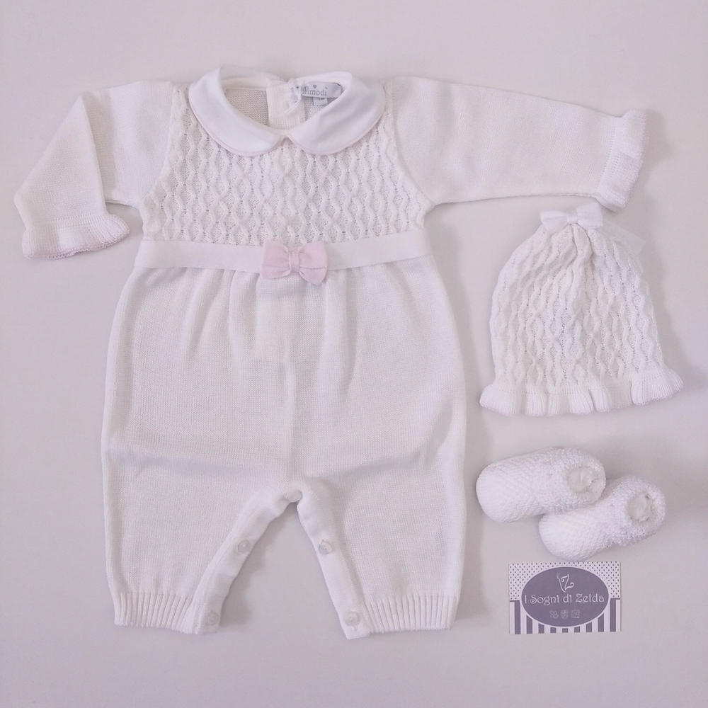 Tutina nascita Primodì Bebè – Bianco/Rosa chiaro