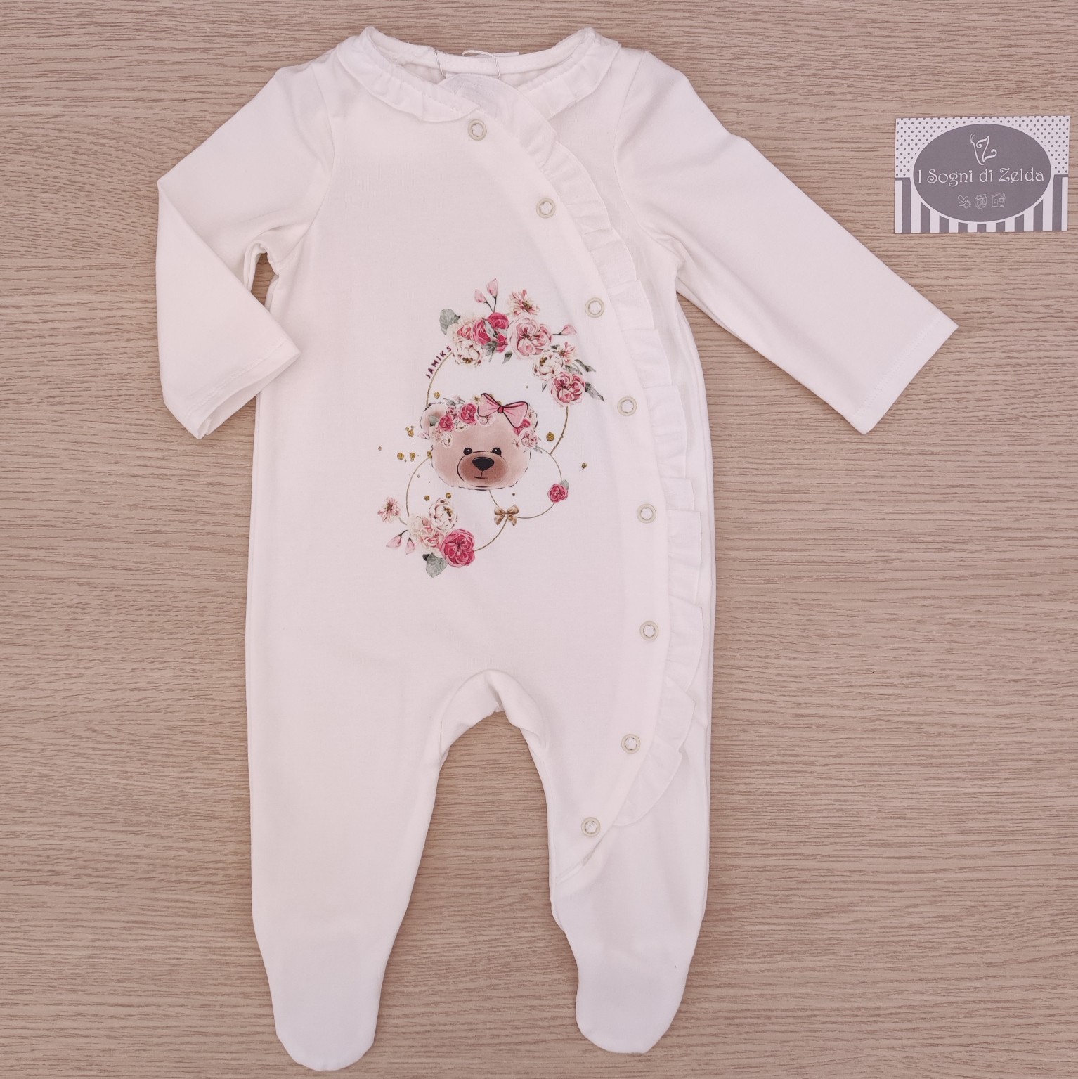Tutina Orsetta Panna – Jamiks in cotone 3 mesi (62cm), 6 mesi (68cm) – 95% cotone, 5% elastane – Made in EU