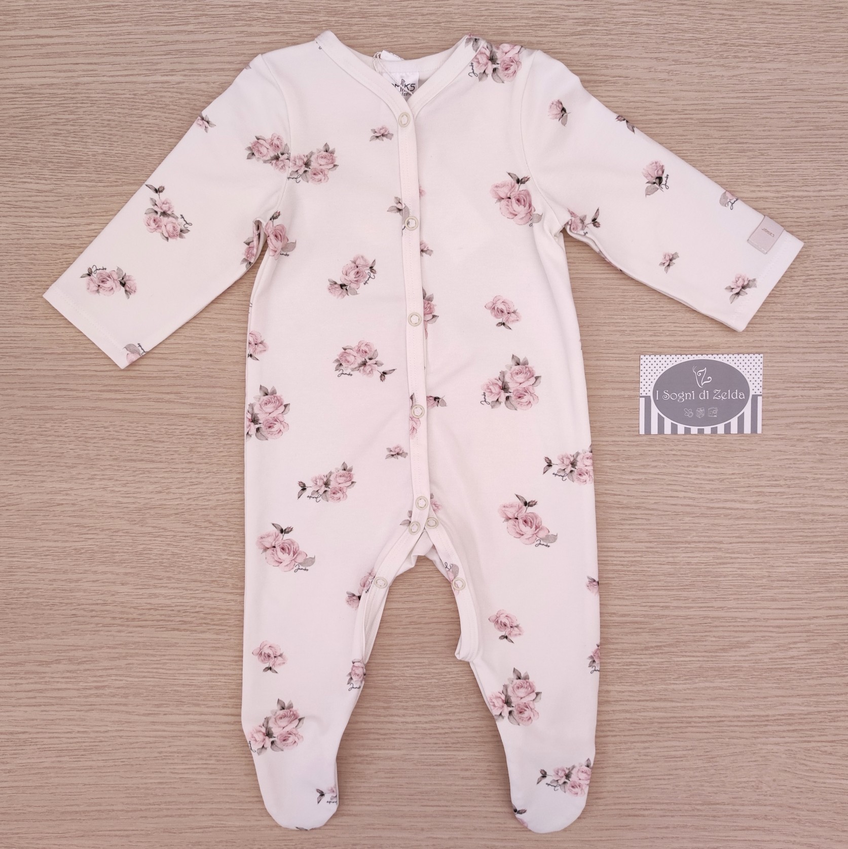 Tutina Rosy – Jamiks Panna Rose in cotone organico 3 mesi (62cm), 6 mesi (68cm) – 95% cotone organico, 5% elastane – Made in EU
