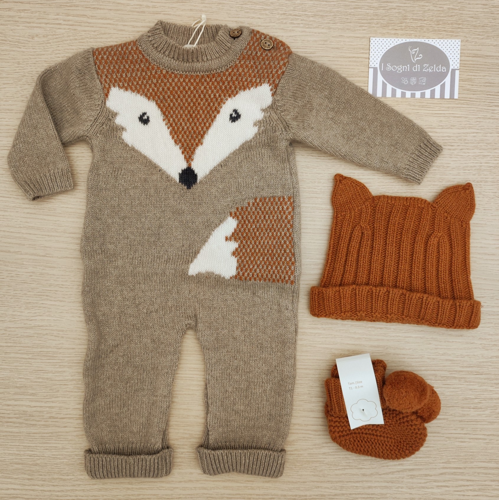 Tutina Volpe – Wedoble, comprende cappellino e scarpette.