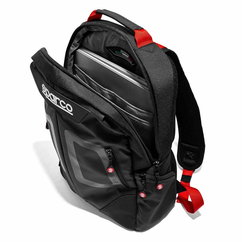 2 Tasche frontali nascoste con grafica che riprende i passa-cintura dei sedili Sparco
